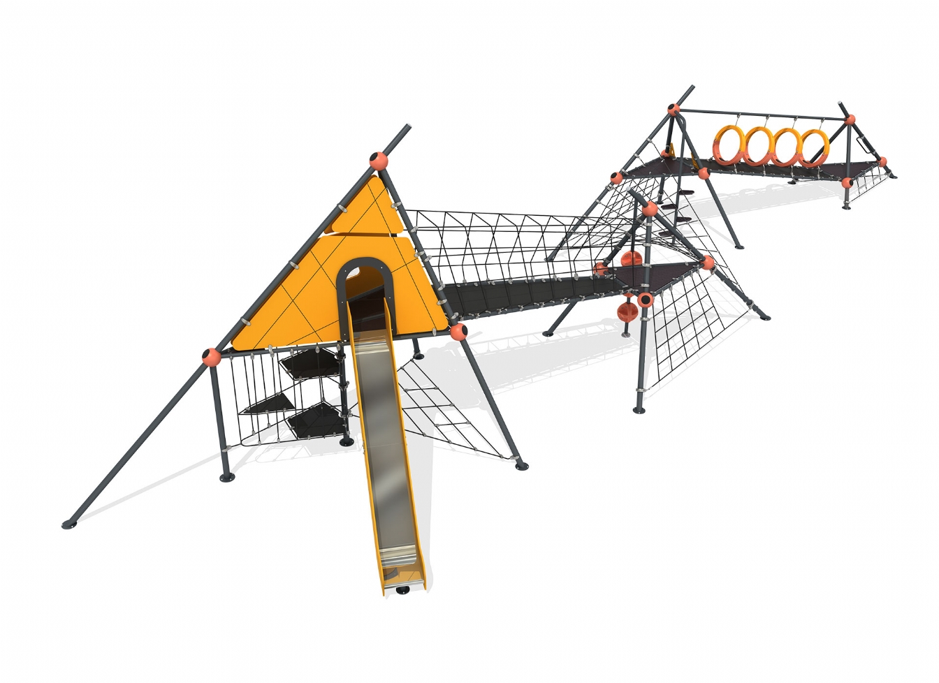 Lekställning Orari i HDPE, HPL och stålvajer för offentlig miljö.
