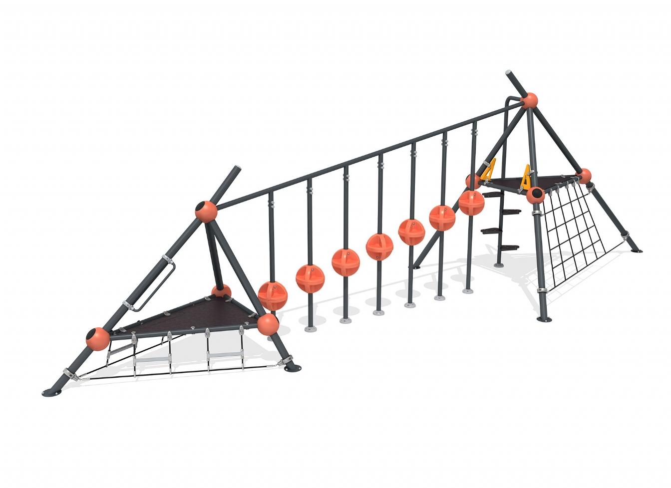 Lekställning Orela är utvecklad för lekplatser, skolor, förskolor och andra offentliga utemiljöer. Produkten har bredd 1005 cm, djup 295 cm och höjd 321 cm. Specifikationen omfattar säkerhetszon L 1305 x W 595. Utförandet i HDPE, HPL, plywood och stålvajer ger en tålig konstruktion som lämpar sig för återkommande användning i krävande miljöer. Den är anpassad för upp till 18 barn och rekommenderad ålder 3-16.