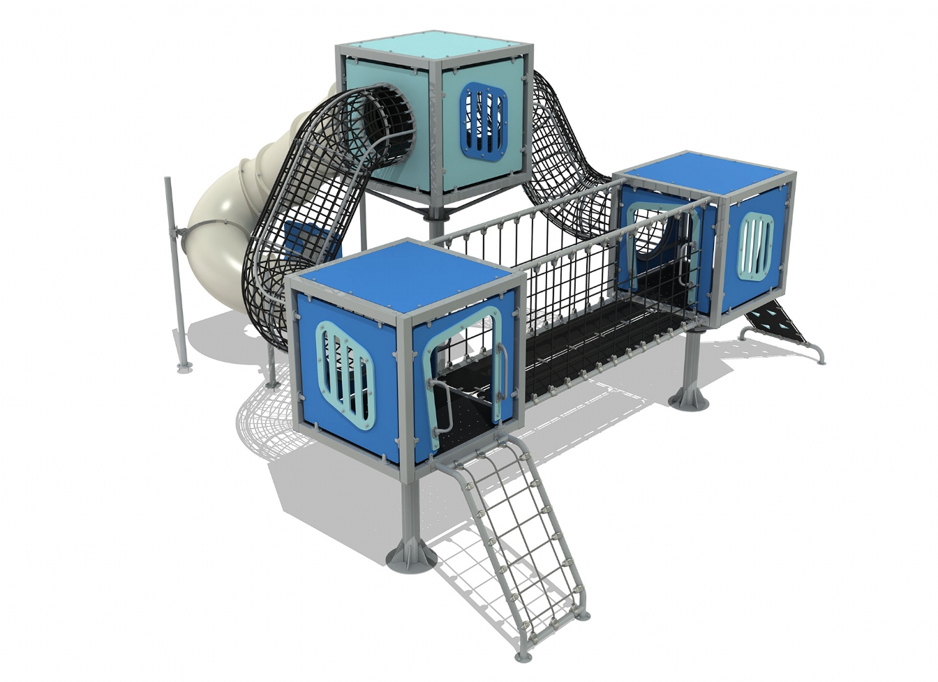 Lekställning Oria i HDPE, HPL och polyeten för offentlig miljö.