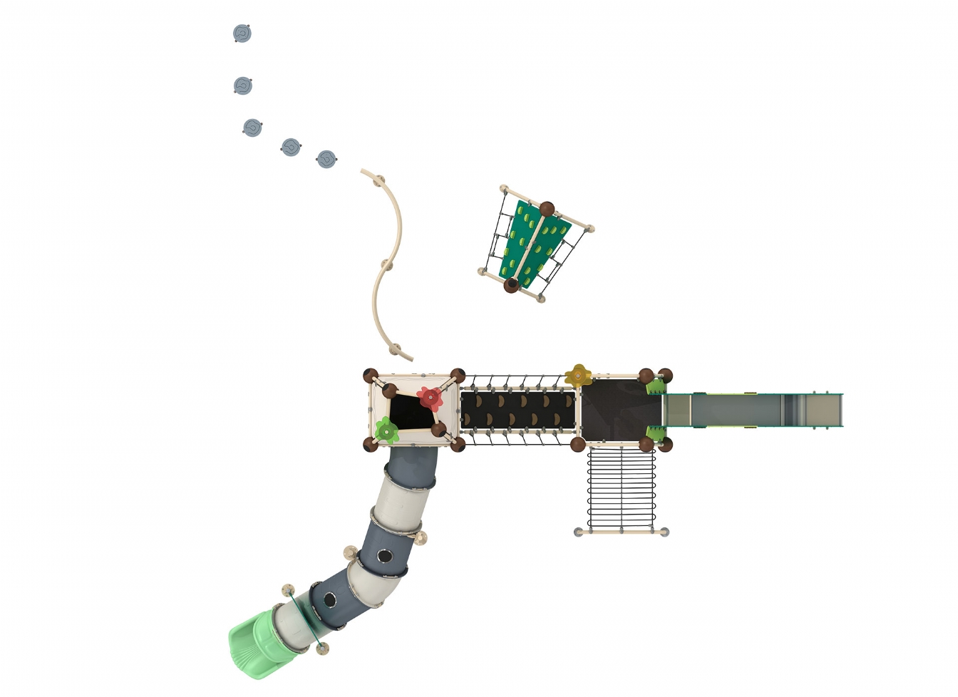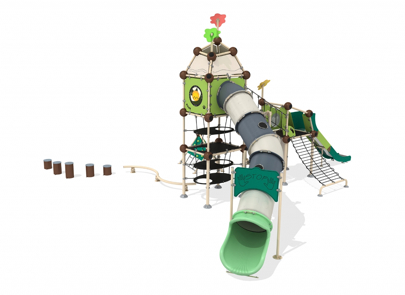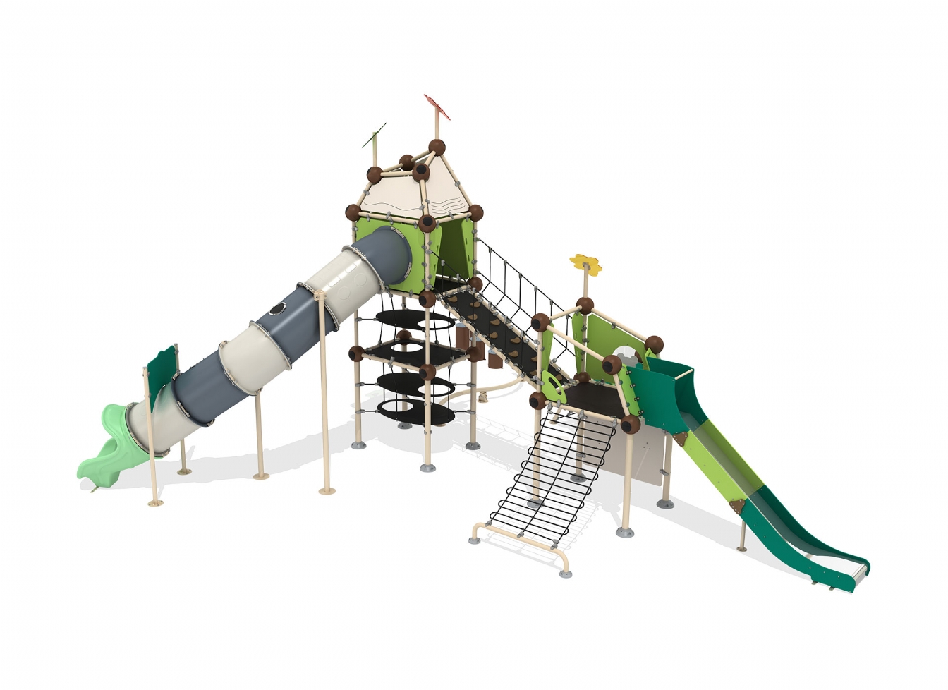 Lekställning Orola i HDPE, HPL och stålvajer för offentlig miljö.