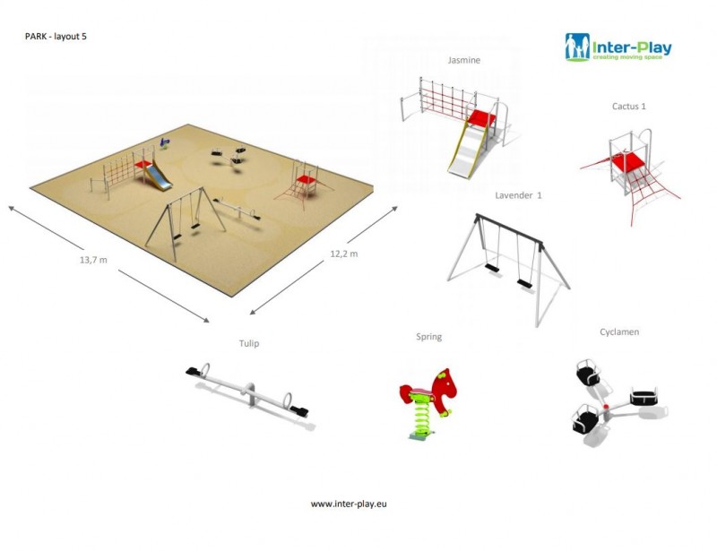 Lekställning Park 5 är utvecklad för offentliga lek- och utemiljöer där säkerhet, hållbarhet och driftsäkerhet är avgörande. Produkten stimulerar rörelse, koordination och social interaktion samt ger ett tydligt lekvärde i offentliga miljöer. Materialvalet är anpassat för lång livslängd i nordiskt klimat. Konstruktionen är anpassad för daglig användning i parker, skolor, förskolor och bostadsområden med långsiktigt underhåll i fokus. Kontakta oss gärna för rådgivning om placering, underlag, montage och val av utförande.