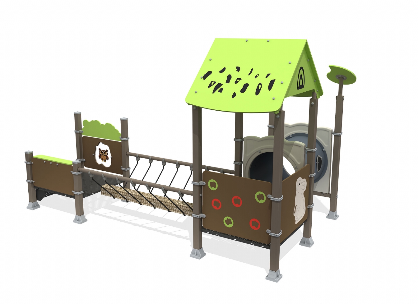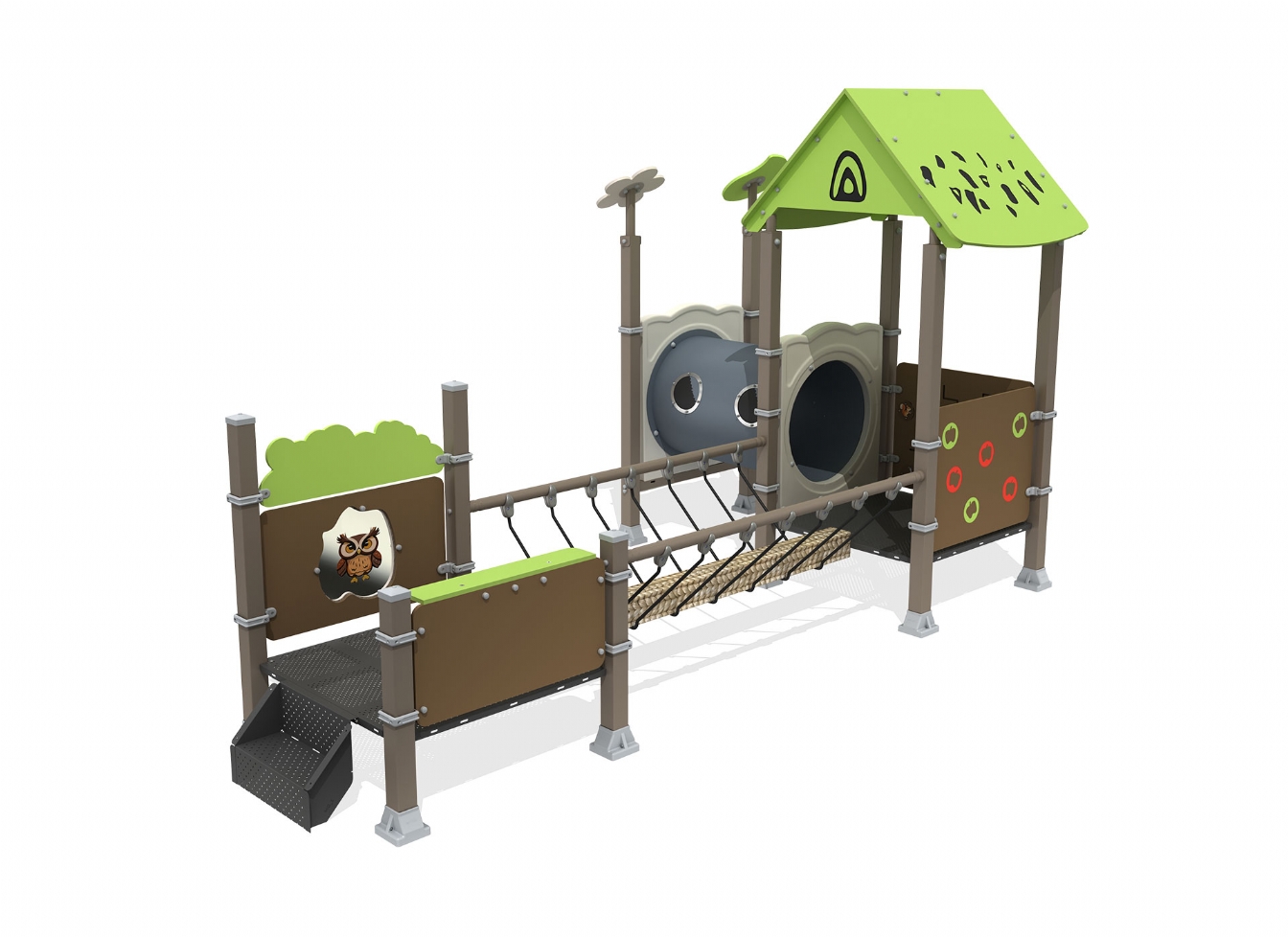 Lekställning Pelari är utvecklad för lekplatser, skolor, förskolor och andra offentliga utemiljöer. Produkten har bredd 500 cm, djup 274 cm och höjd 290 cm. Specifikationen omfattar säkerhetszon L 785 x W 563. Utförandet i metallprofil, polykarbonat, marinplywood och gummi ger en tålig konstruktion som lämpar sig för återkommande användning i krävande miljöer. Den är anpassad för upp till 15 barn och rekommenderad ålder 3-12.