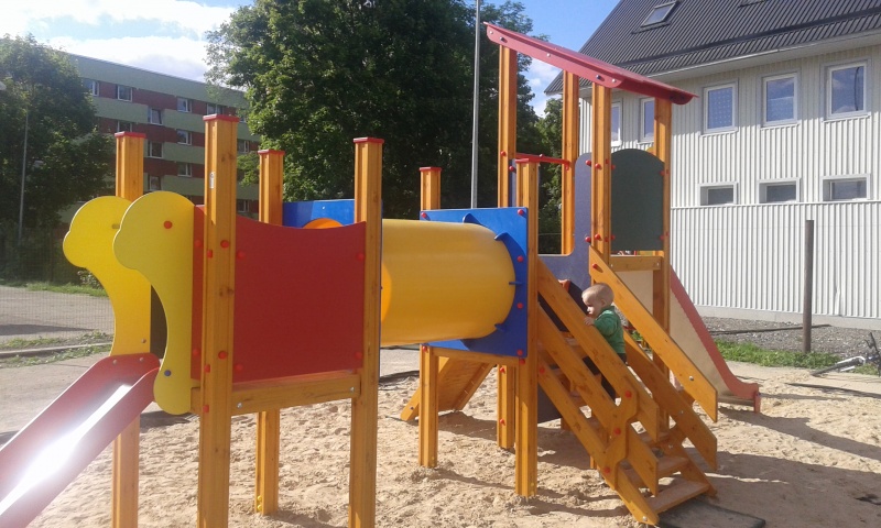 Lekcenter med flera nivåer, tunnlar och rutschkanor som kombinerar rörelselek, klättring och utforskande.