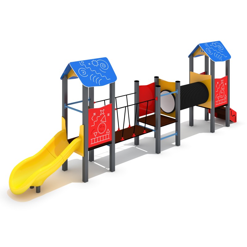 Konstruktion consistsrör med en square profil. Plattform Gjord av HPL material. Walls Gjord av HDPE material med en tjocklek 1 2 mm. A slide is Gjord av colorful, hållbart PE material that does not heat up. Nuts och washers are Gjord av rostfritt stål.