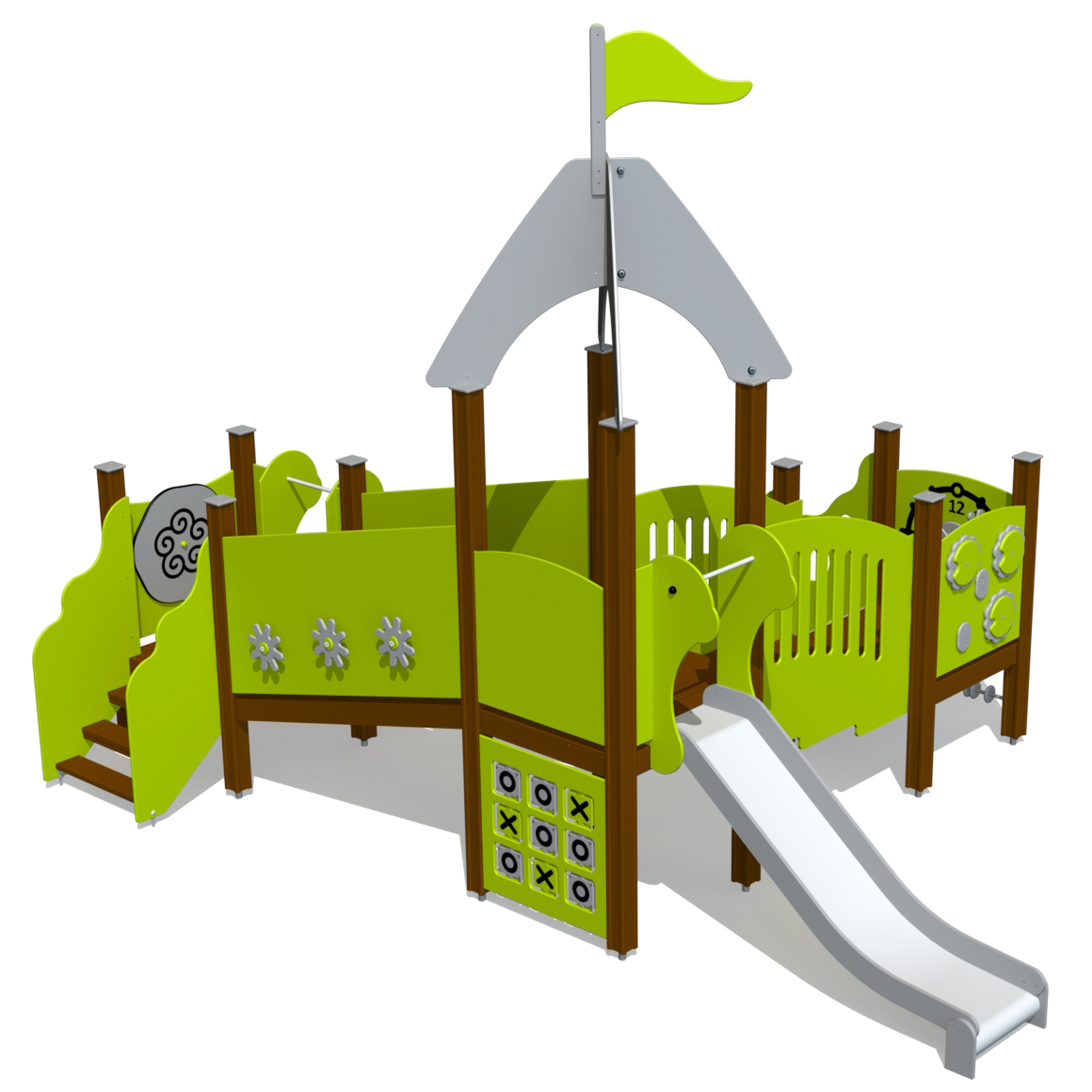 Produkten är utvecklad för lekplatser, förskolegårdar och andra offentliga utemiljöer där utrustningen behöver tåla regelbunden användning över tid. Modellen kombinerar flera lekmoment och ger barn möjlighet till varierad aktivitet, samspel och motorisk utveckling. Mått enligt specifikation: cirka 5,16 x 3,69 x 3,65 m. Rekommenderad ålder: 1+. En hållbar lösning för långsiktig drift och trygg användning i offentlig utemiljö.