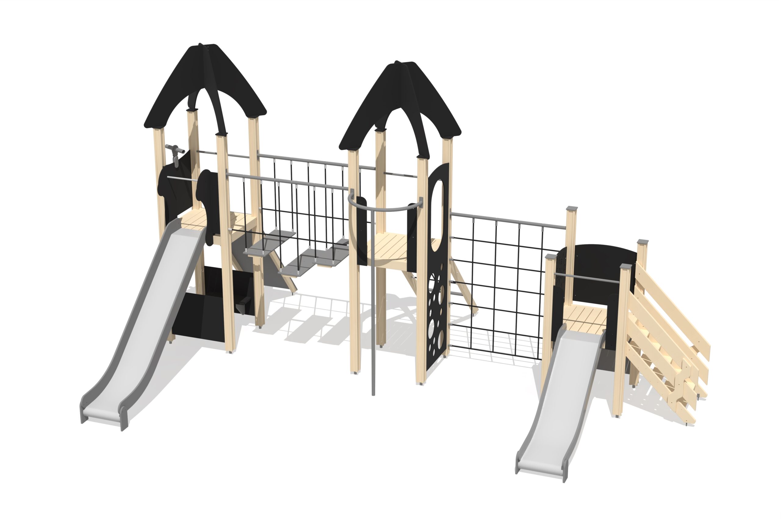Produkten är utvecklad för lekplatser, förskolegårdar och andra offentliga utemiljöer där utrustningen behöver tåla regelbunden användning över tid. Modellen kombinerar flera lekmoment och ger barn möjlighet till varierad aktivitet, samspel och motorisk utveckling. Mått enligt specifikation: cirka 6,71 x 4,73 x 3,81 m. Rekommenderad ålder: 1+. En hållbar lösning för långsiktig drift och trygg användning i offentlig utemiljö.