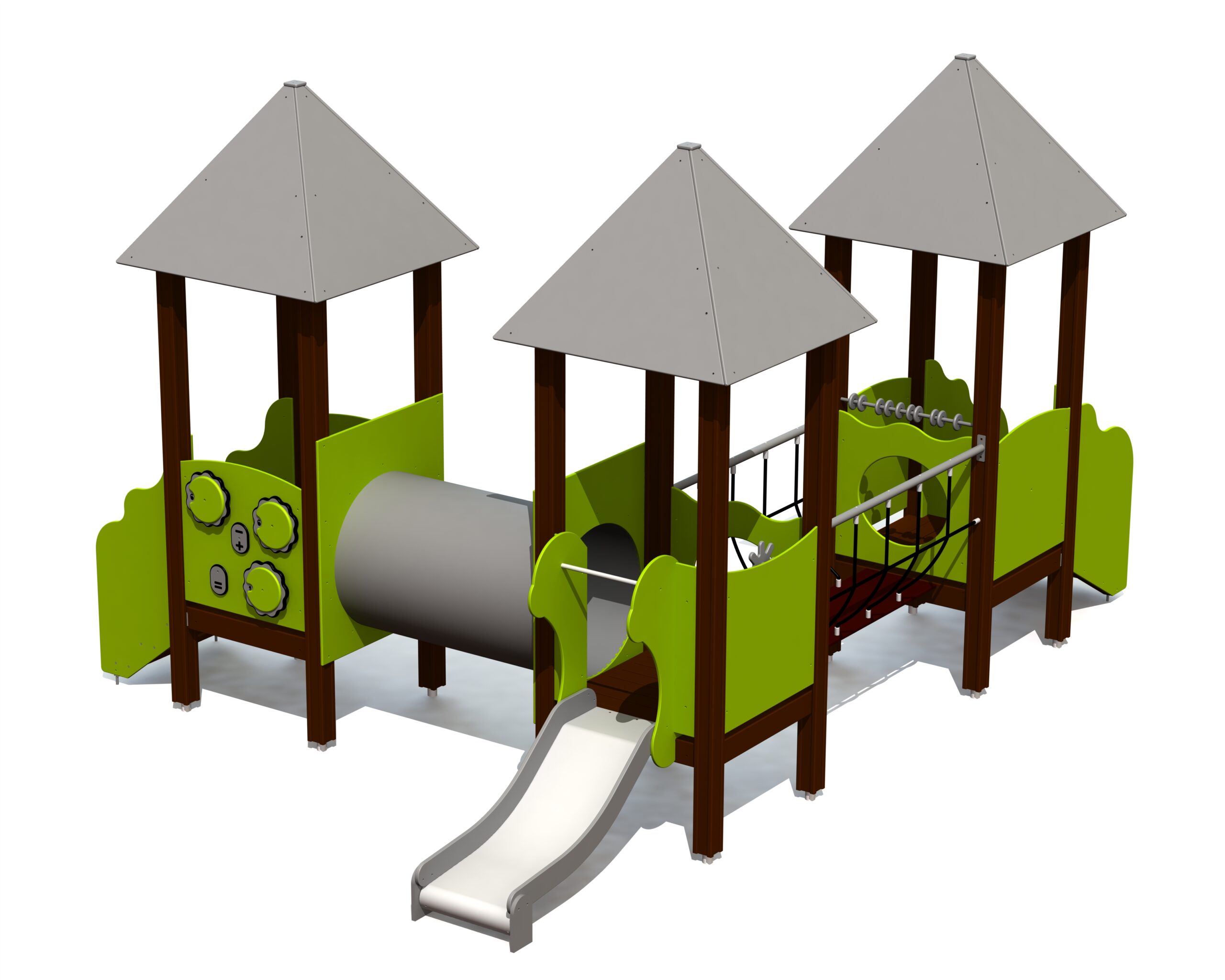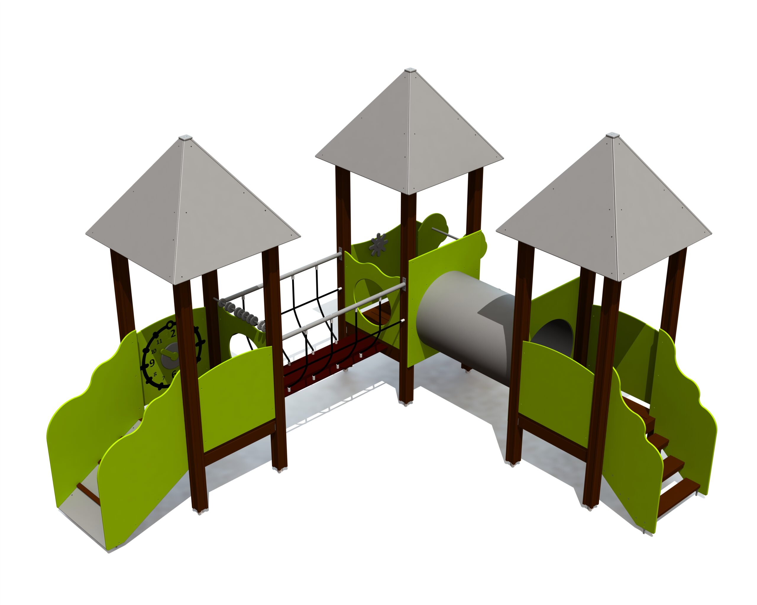 Produkten är utvecklad för lekplatser, förskolegårdar och andra offentliga utemiljöer där utrustningen behöver tåla regelbunden användning över tid. Modellen kombinerar flera lekmoment och ger barn möjlighet till varierad aktivitet, samspel och motorisk utveckling. Mått enligt specifikation: cirka 5,32 x 3,82 x 3,07 m. Rekommenderad ålder: 1+. En hållbar lösning för långsiktig drift och trygg användning i offentlig utemiljö.