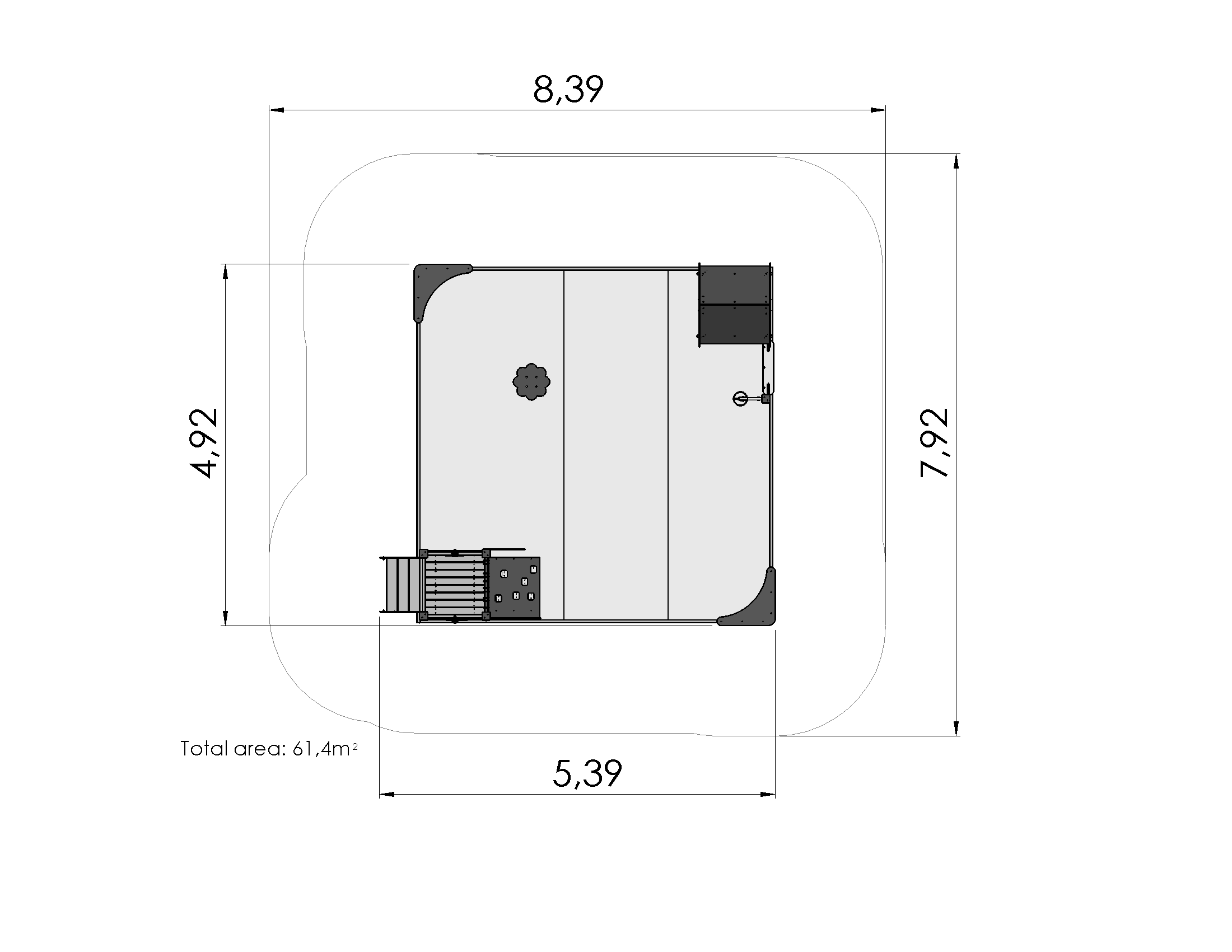 Produkten är utvecklad för lekplatser, förskolegårdar och andra offentliga utemiljöer där utrustningen behöver tåla regelbunden användning över tid. Modellen kombinerar flera lekmoment och ger barn möjlighet till varierad aktivitet, samspel och motorisk utveckling. Mått enligt specifikation: cirka 5,39 x 4,92 x 2,61 m. Rekommenderad ålder: 1+. En hållbar lösning för långsiktig drift och trygg användning i offentlig utemiljö.