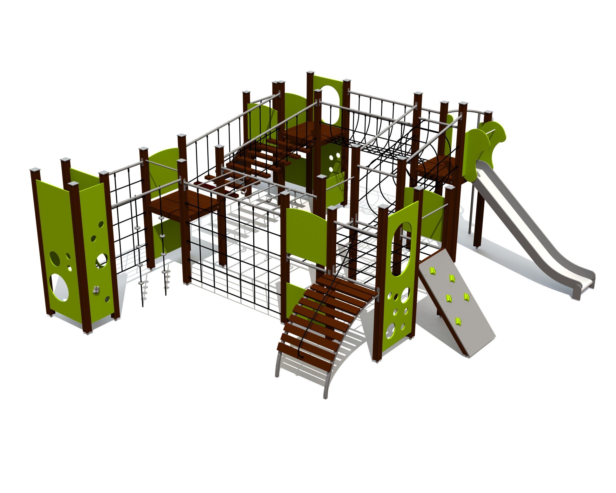 Produkten är utvecklad för lekplatser, förskolegårdar och andra offentliga utemiljöer där utrustningen behöver tåla regelbunden användning över tid. Modellen kombinerar flera lekmoment och ger barn möjlighet till varierad aktivitet, samspel och motorisk utveckling. Mått enligt specifikation: cirka 7,89 x 6,87 x 2,86 m. Rekommenderad ålder: 4+. En hållbar lösning för långsiktig drift och trygg användning i offentlig utemiljö.