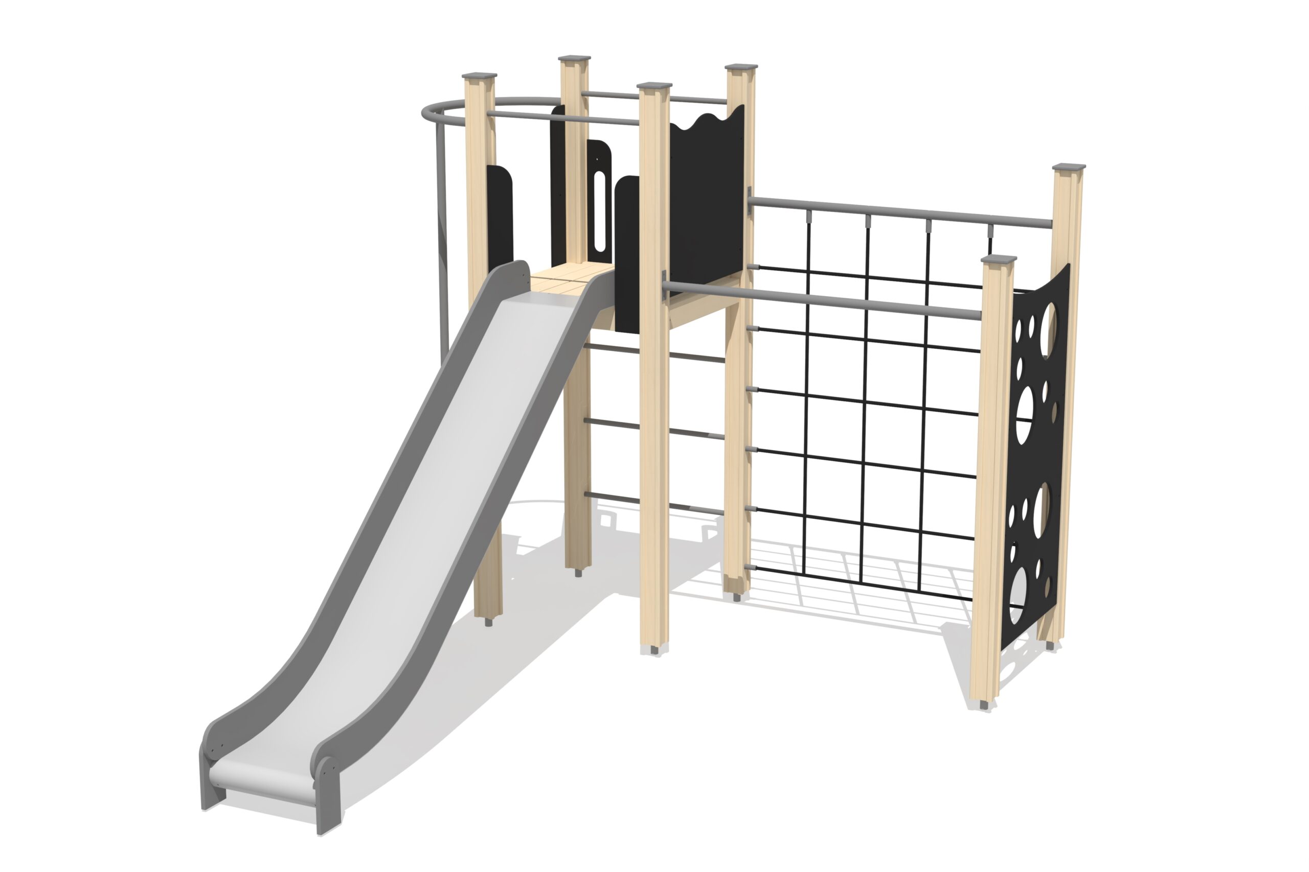 Produkten är utvecklad för lekplatser, förskolegårdar och andra offentliga utemiljöer där utrustningen behöver tåla regelbunden användning över tid. Modellen kombinerar flera lekmoment och ger barn möjlighet till varierad aktivitet, samspel och motorisk utveckling. Mått enligt specifikation: cirka 3,27 x 2,93 x 2,51 m. Rekommenderad ålder: 4+. En hållbar lösning för långsiktig drift och trygg användning i offentlig utemiljö.