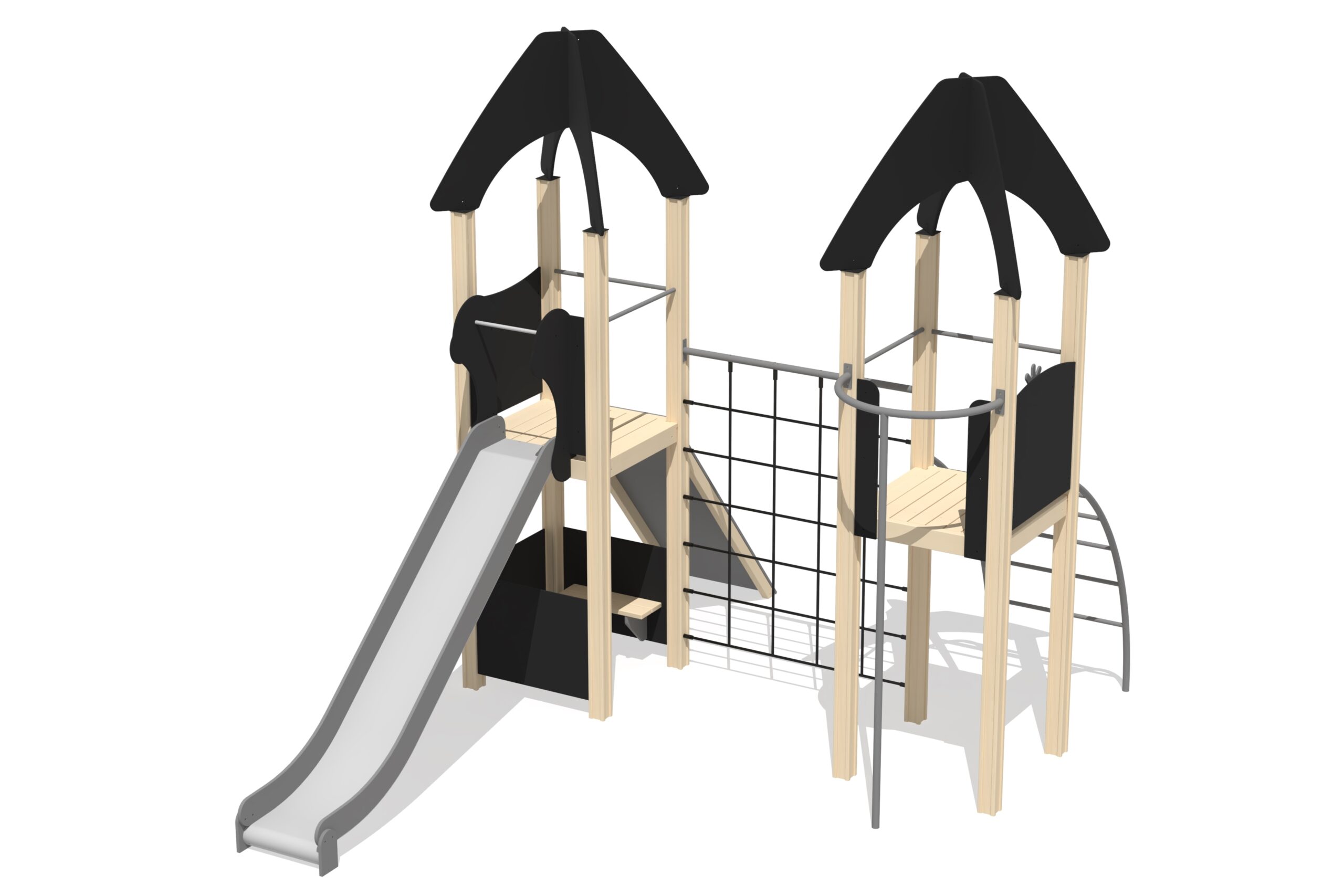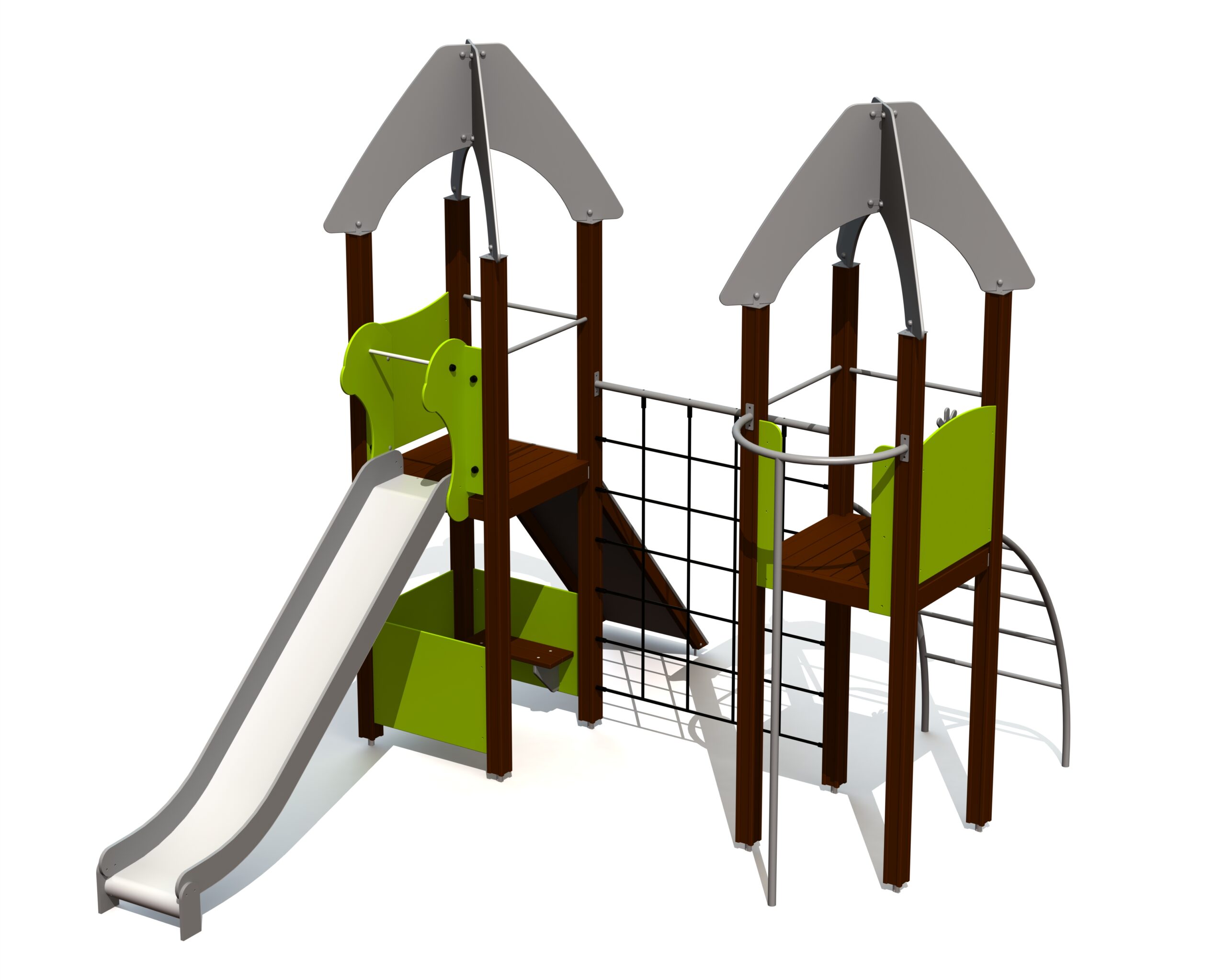 Produkten är utvecklad för lekplatser, förskolegårdar och andra offentliga utemiljöer där utrustningen behöver tåla regelbunden användning över tid. Modellen kombinerar flera lekmoment och ger barn möjlighet till varierad aktivitet, samspel och motorisk utveckling. Mått enligt specifikation: cirka 4,49 x 3,48 x 3,82 m. Rekommenderad ålder: 3+. En hållbar lösning för långsiktig drift och trygg användning i offentlig utemiljö.