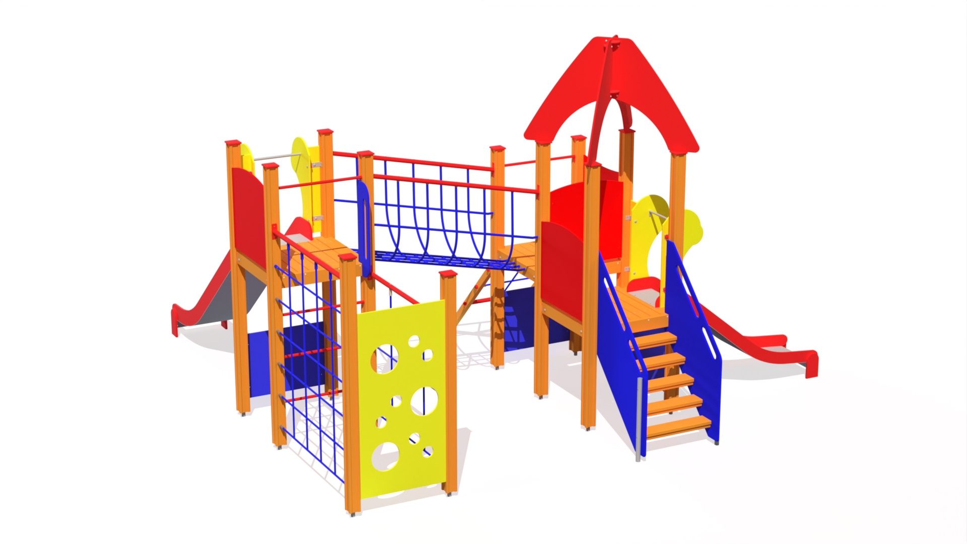 Produkten är utvecklad för lekplatser, förskolegårdar och andra offentliga utemiljöer där utrustningen behöver tåla regelbunden användning över tid. Modellen kombinerar flera lekmoment och ger barn möjlighet till varierad aktivitet, samspel och motorisk utveckling. Mått enligt specifikation: cirka 5,17 x 4,95 x 3,35 m. Rekommenderad ålder: 1+. En hållbar lösning för långsiktig drift och trygg användning i offentlig utemiljö.