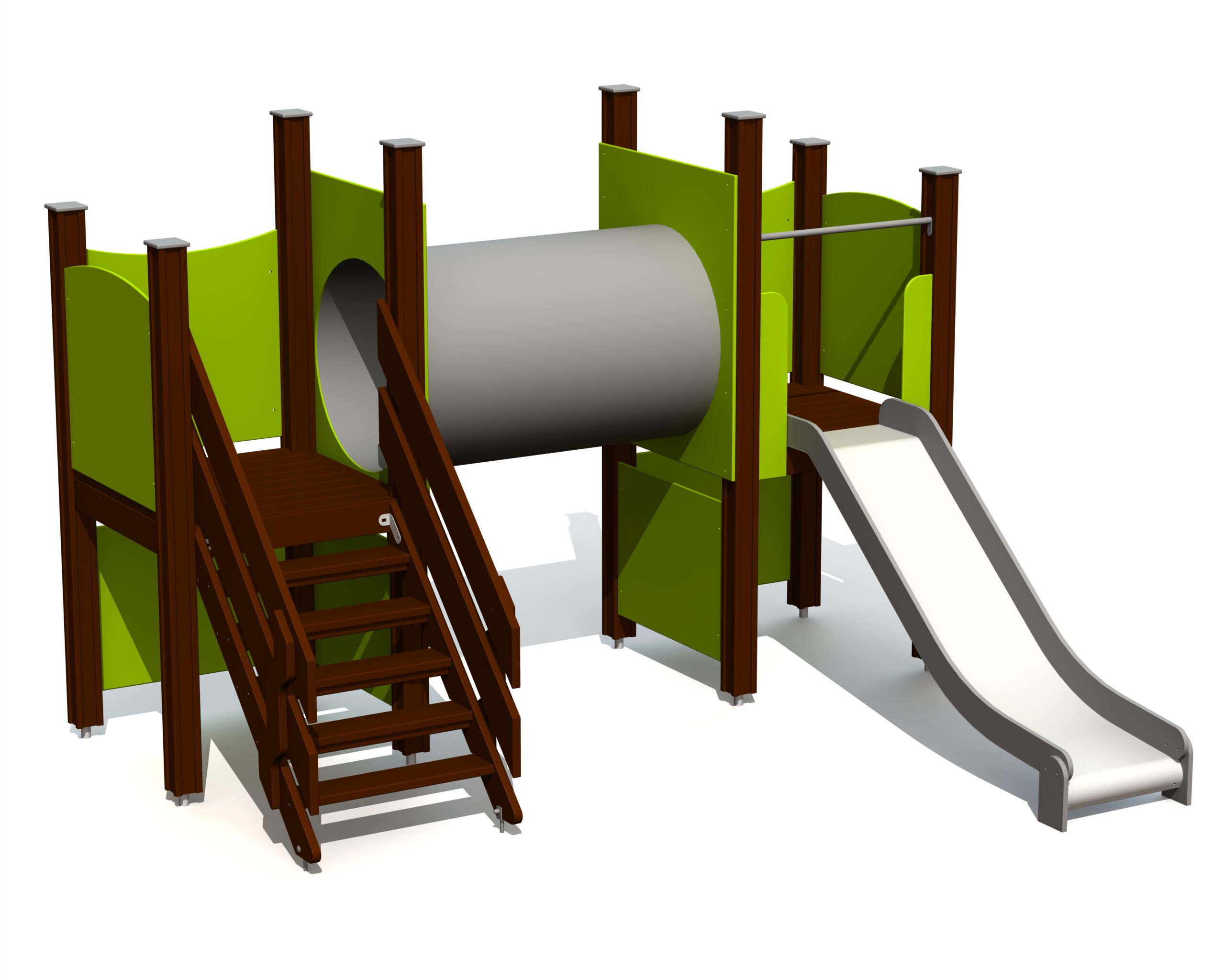 Produkten är utvecklad för lekplatser, förskolegårdar och andra offentliga utemiljöer där utrustningen behöver tåla regelbunden användning över tid. Modellen kombinerar flera lekmoment och ger barn möjlighet till varierad aktivitet, samspel och motorisk utveckling. Mått enligt specifikation: cirka 3,14 x 2,61 x 2,16 m. Rekommenderad ålder: 1+. En hållbar lösning för långsiktig drift och trygg användning i offentlig utemiljö.