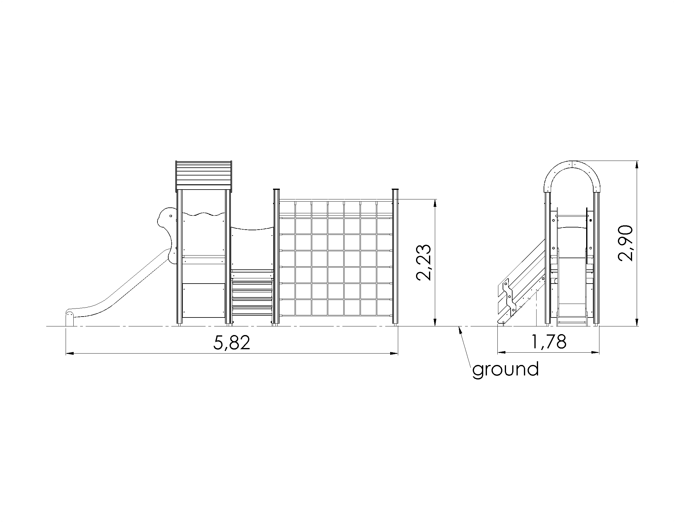 Produkten är utvecklad för lekplatser, förskolegårdar och andra offentliga utemiljöer där utrustningen behöver tåla regelbunden användning över tid. Modellen kombinerar flera lekmoment och ger barn möjlighet till varierad aktivitet, samspel och motorisk utveckling. Mått enligt specifikation: cirka 5,82 x 1,78 x 2,9 m. Rekommenderad ålder: 1+. En hållbar lösning för långsiktig drift och trygg användning i offentlig utemiljö.