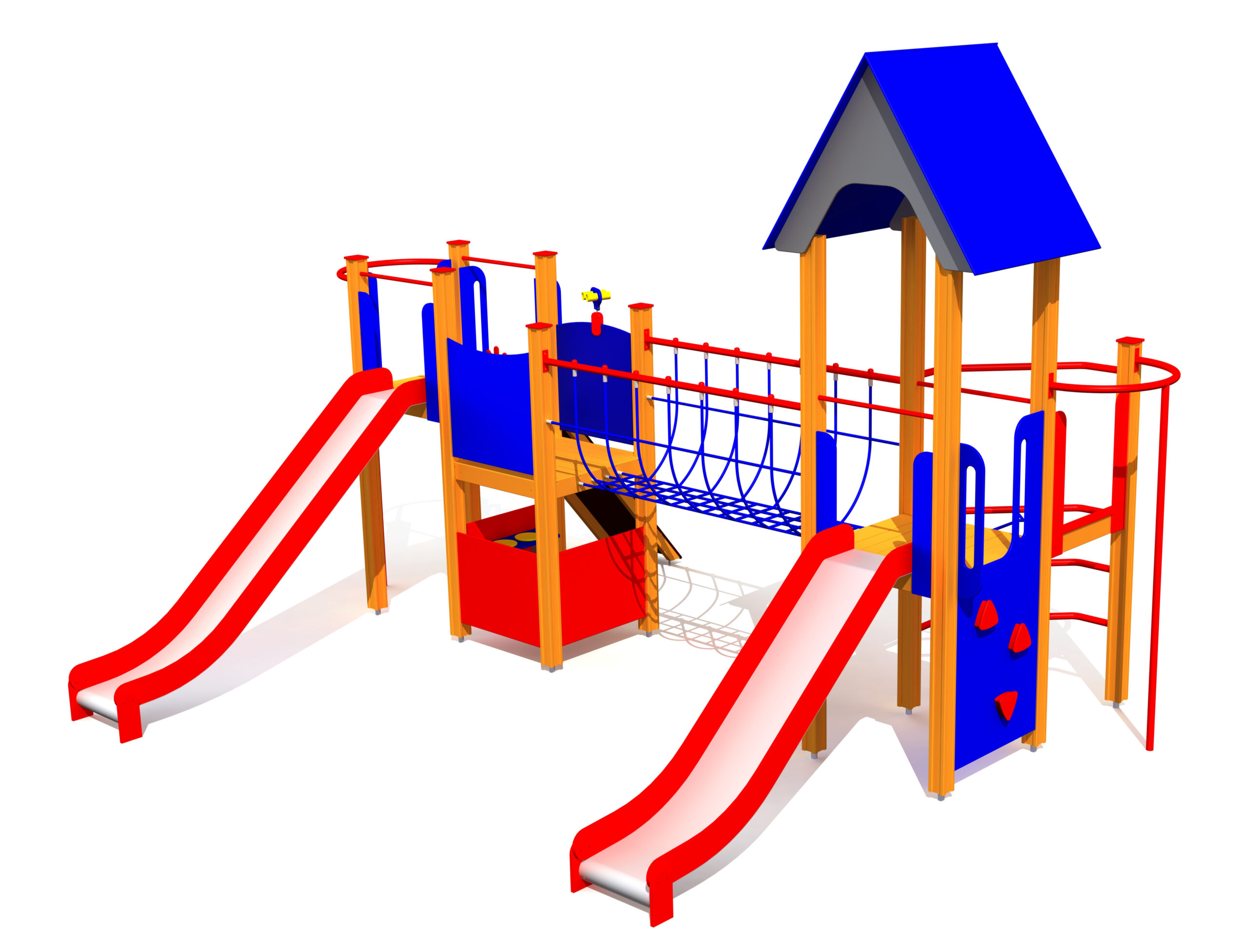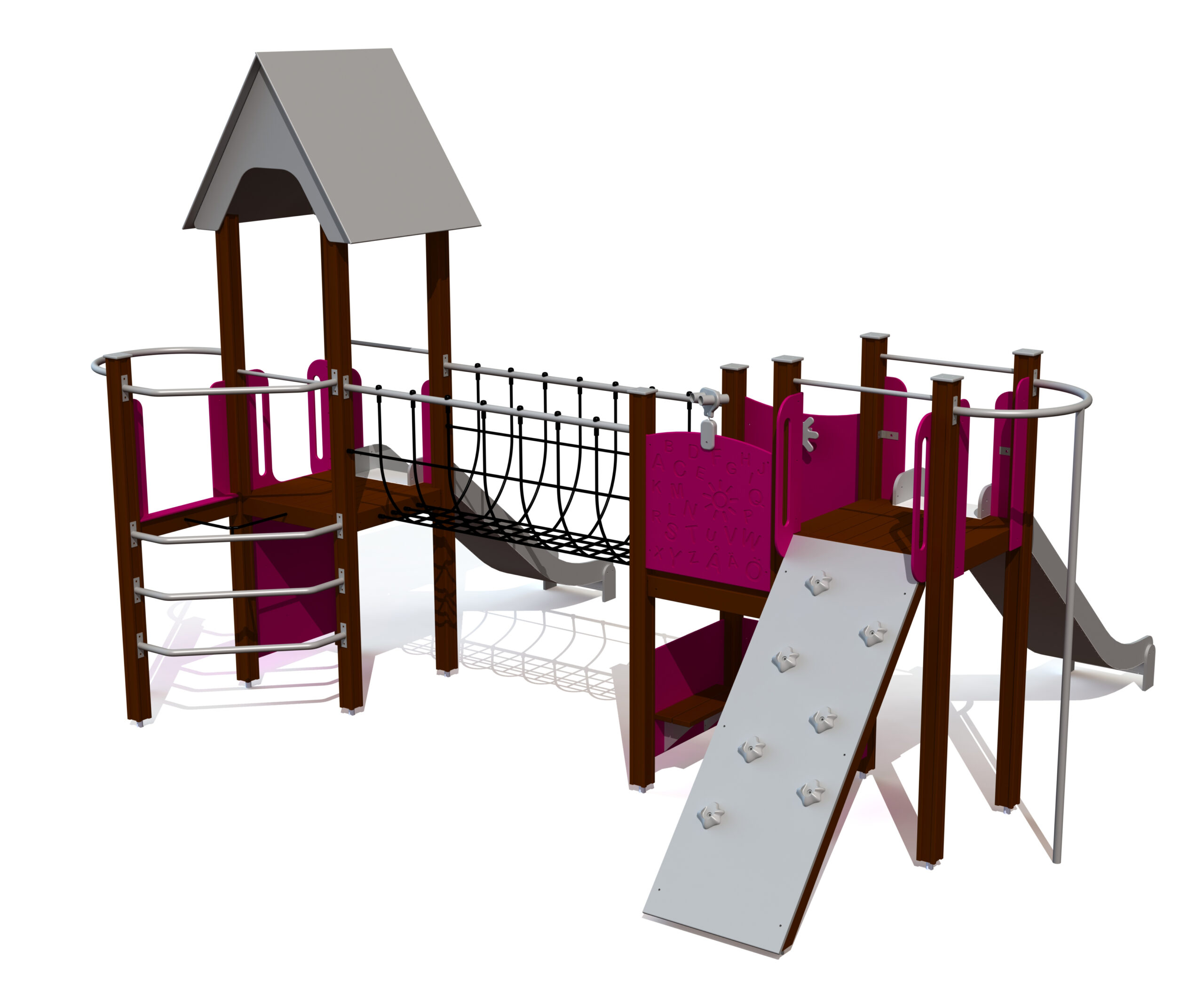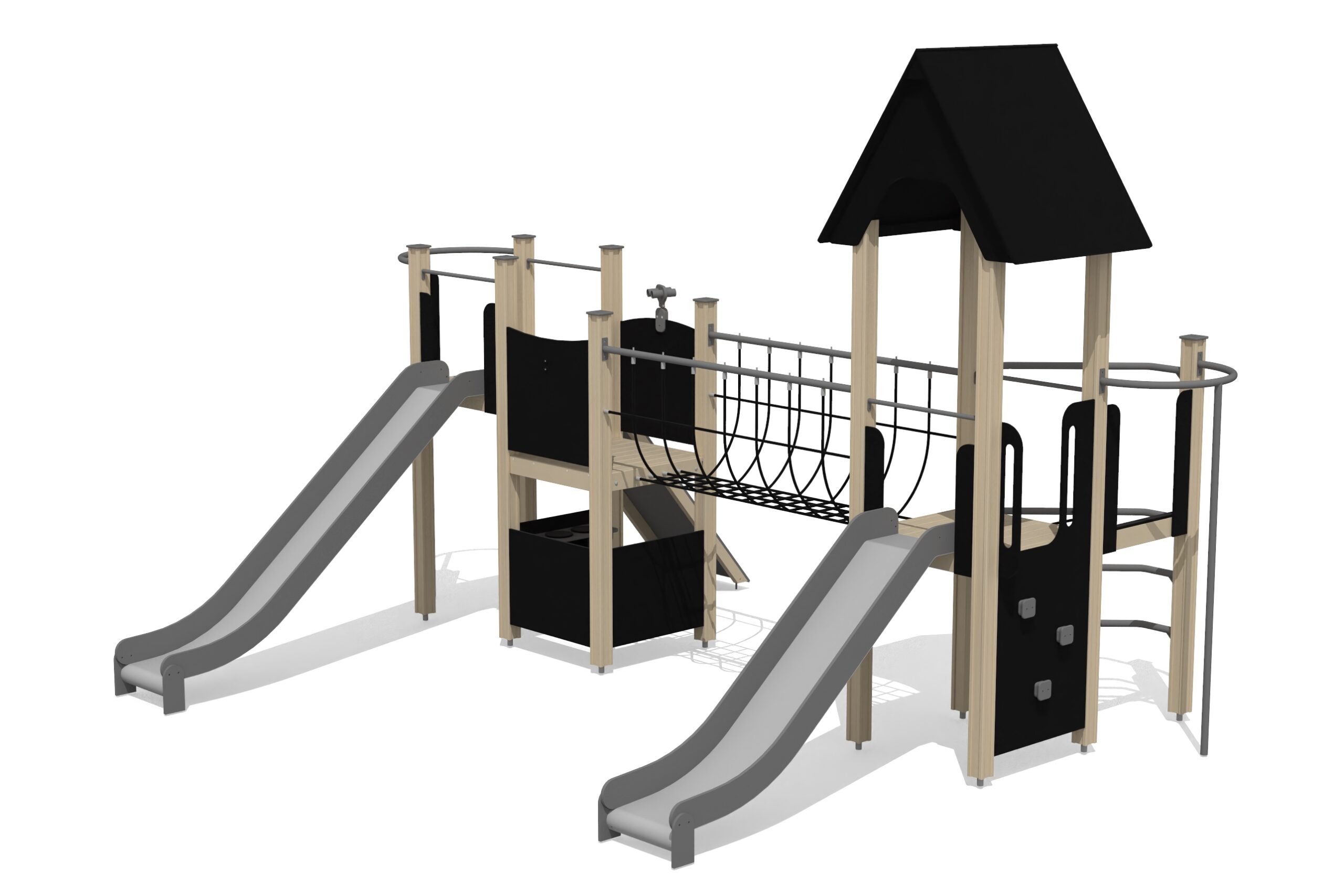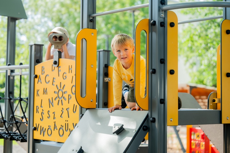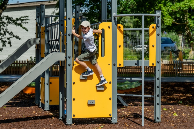 Produkten är utvecklad för lekplatser, förskolegårdar och andra offentliga utemiljöer där utrustningen behöver tåla regelbunden användning över tid. Modellen kombinerar flera lekmoment och ger barn möjlighet till varierad aktivitet, samspel och motorisk utveckling. Mått enligt specifikation: cirka 5,61 x 4,5 x 3,73 m. Rekommenderad ålder: 4+. En hållbar lösning för långsiktig drift och trygg användning i offentlig utemiljö.