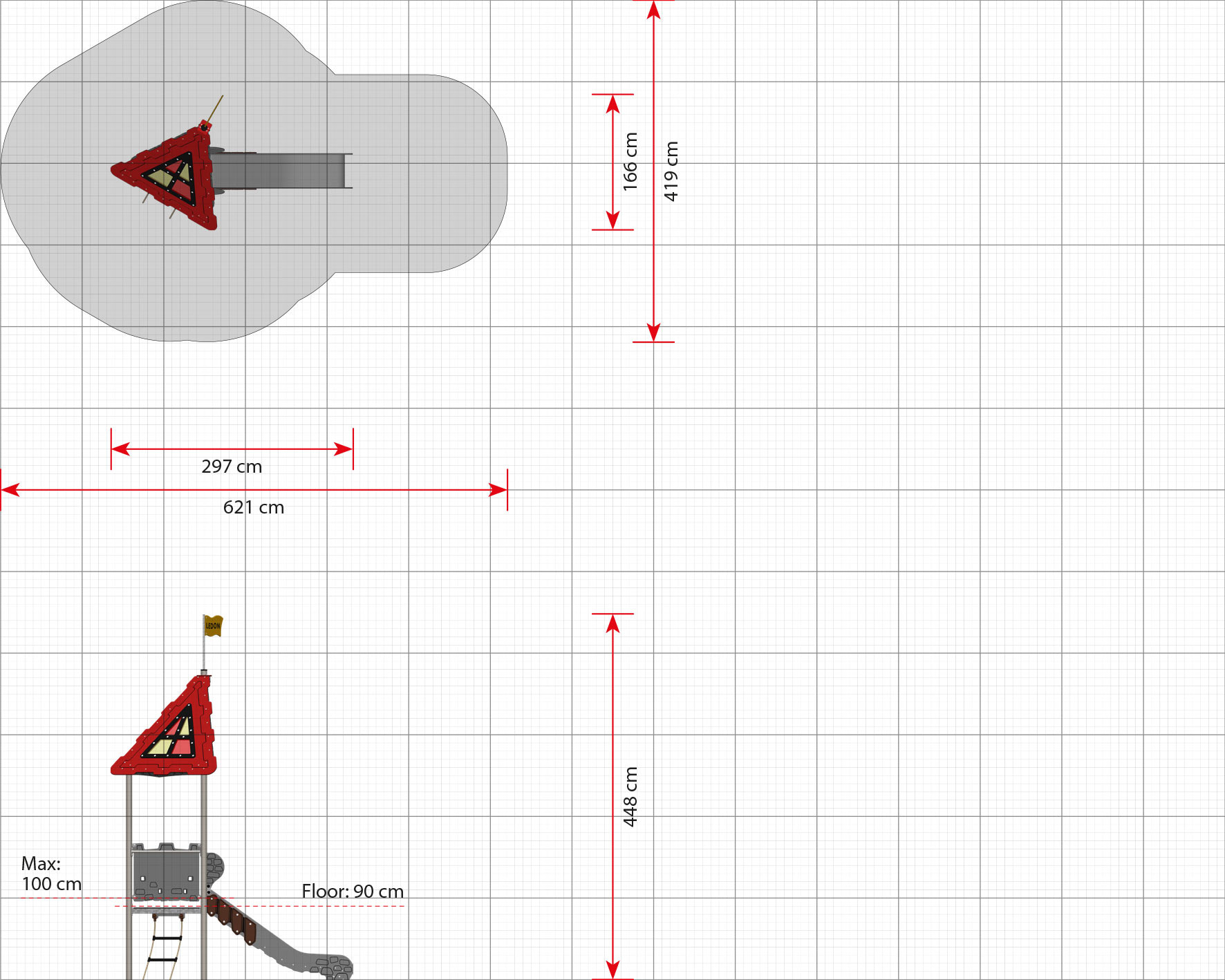 Lekställning Pogor är utvecklad för lekplatser där barn behöver varierade utmaningar i samma produkt. Den kombinerar lekvärde med robust konstruktion och uppmuntrar till klättring, balans och social lek. Produkten passar väl i förskola, skola och parkmiljö där hög användning ställer krav på kvalitet och driftsäkerhet. Mått (L x B x H): 297 cm x 166 cm x 448 cm. Max fallhöjd: 100 cm. Rekommenderad ålder: Från 3 år.