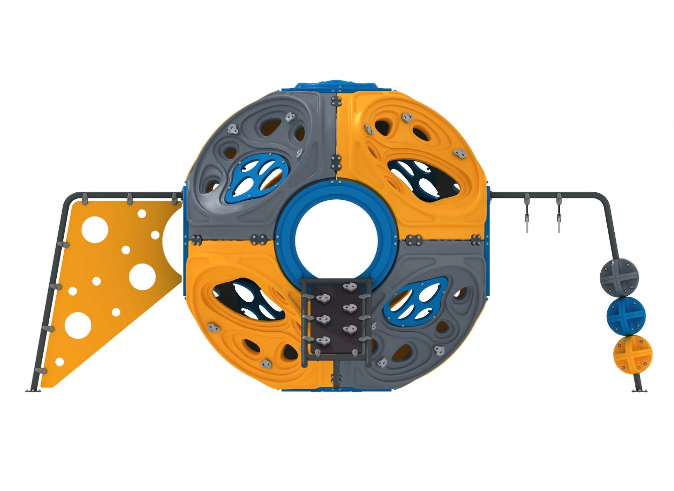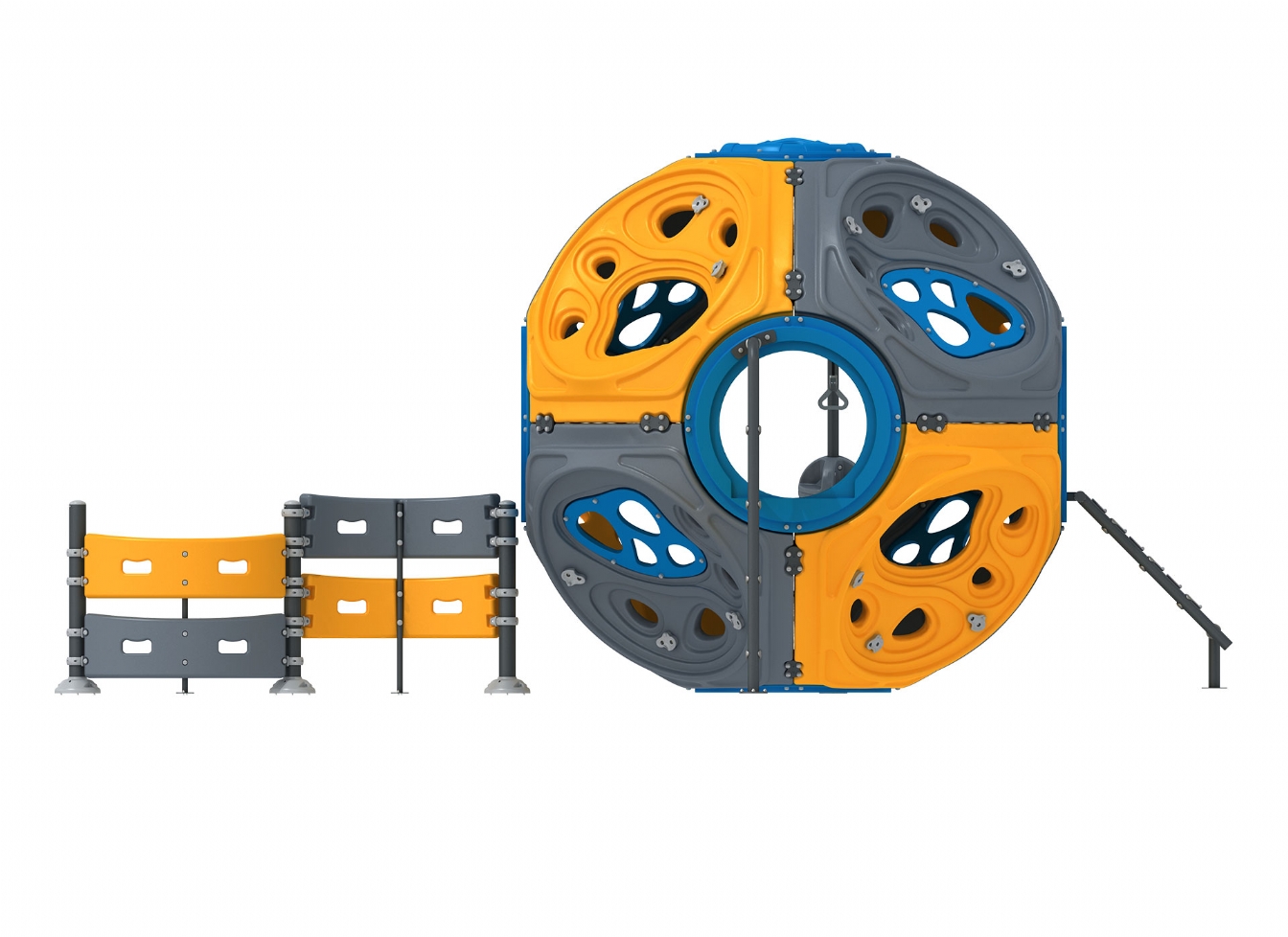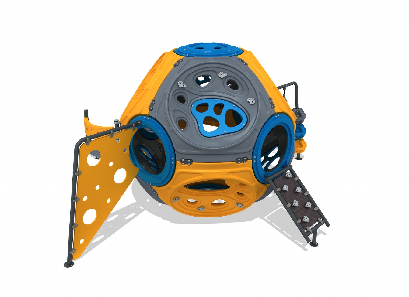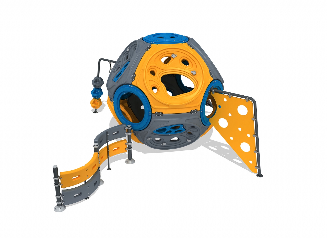 Lekställning Quinari är utvecklad för lekplatser, skolor, förskolor och andra offentliga utemiljöer. Produkten har bredd 620 cm, djup 584 cm och höjd 300 cm. Specifikationen omfattar säkerhetszon L 917 x W 888. Utförandet i polykarbonat och marinplywood ger en tålig konstruktion som lämpar sig för återkommande användning i krävande miljöer. Den är anpassad för upp till 20 barn och rekommenderad ålder 3-12.