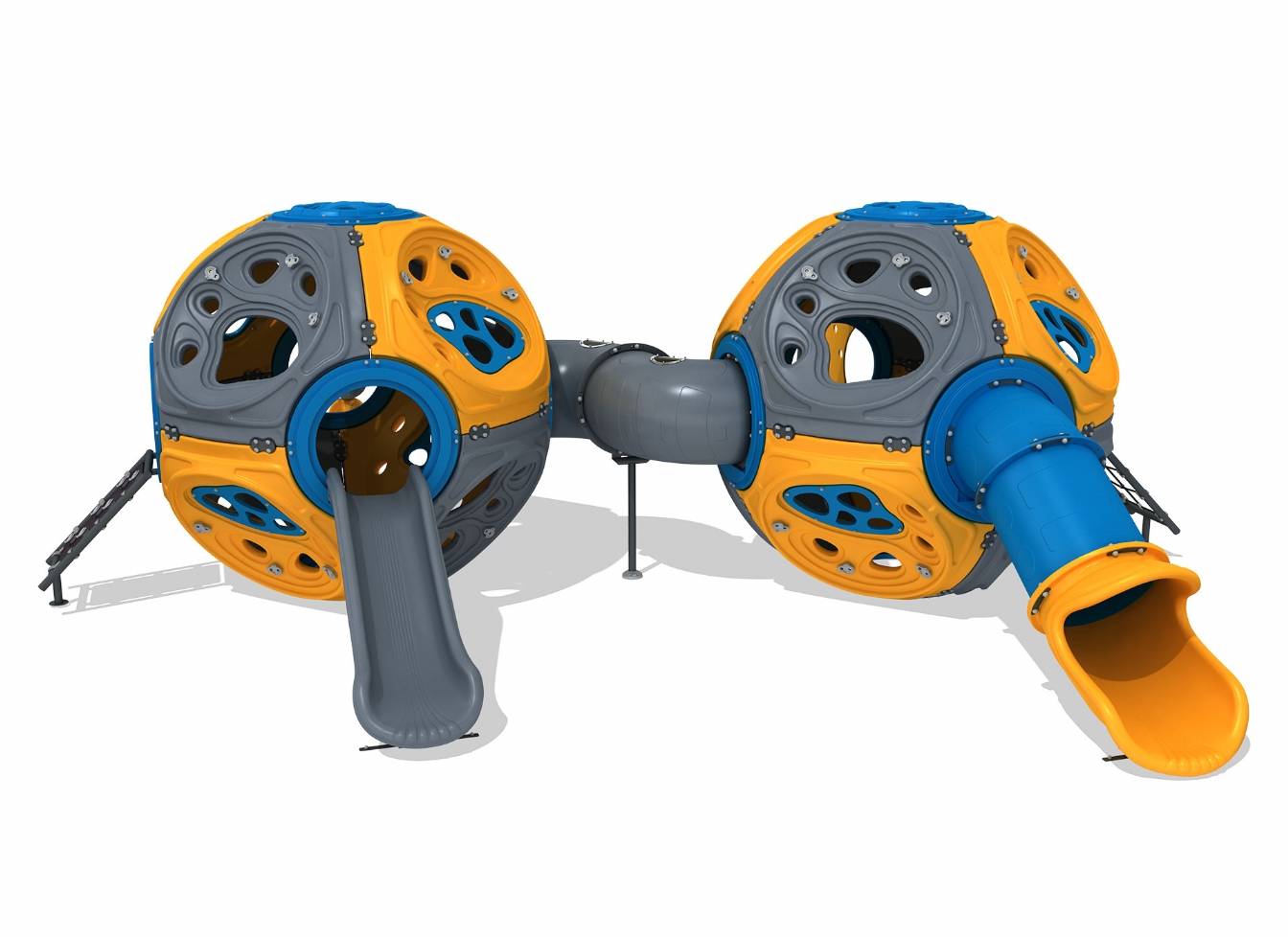Lekställning Quineno är utvecklad för lekplatser, skolor, förskolor och andra offentliga utemiljöer. Produkten har bredd 865 cm, djup 780 cm och höjd 300 cm. Specifikationen omfattar säkerhetszon L 1160 x W 1084 samt rutschhöjd 100 cm. Utförandet i polykarbonat och marinplywood ger en tålig konstruktion som lämpar sig för återkommande användning i krävande miljöer. Den är anpassad för upp till 30 barn och rekommenderad ålder 3-12.