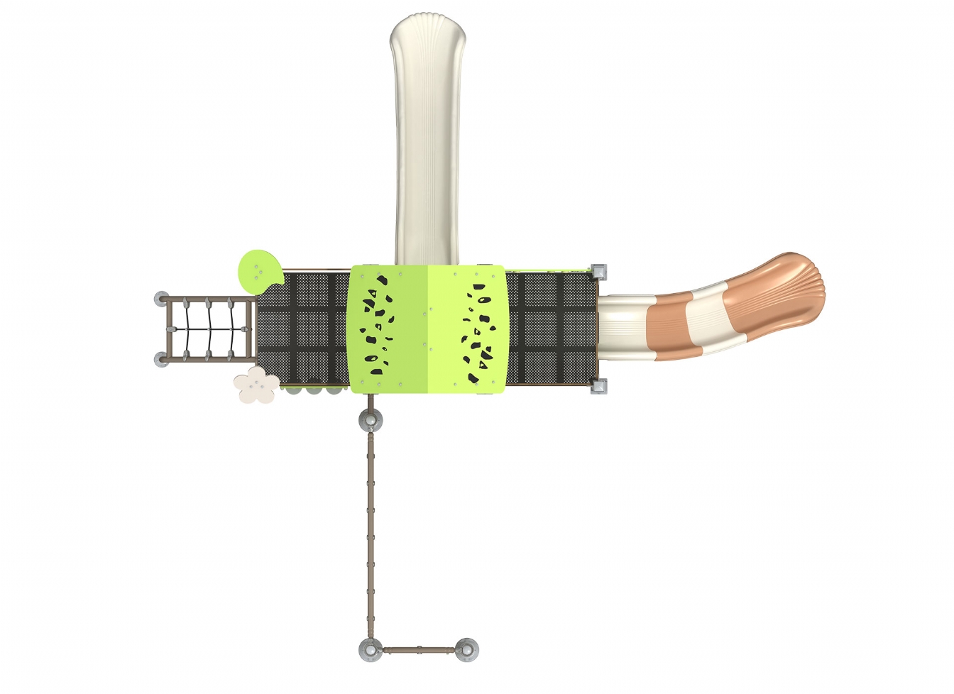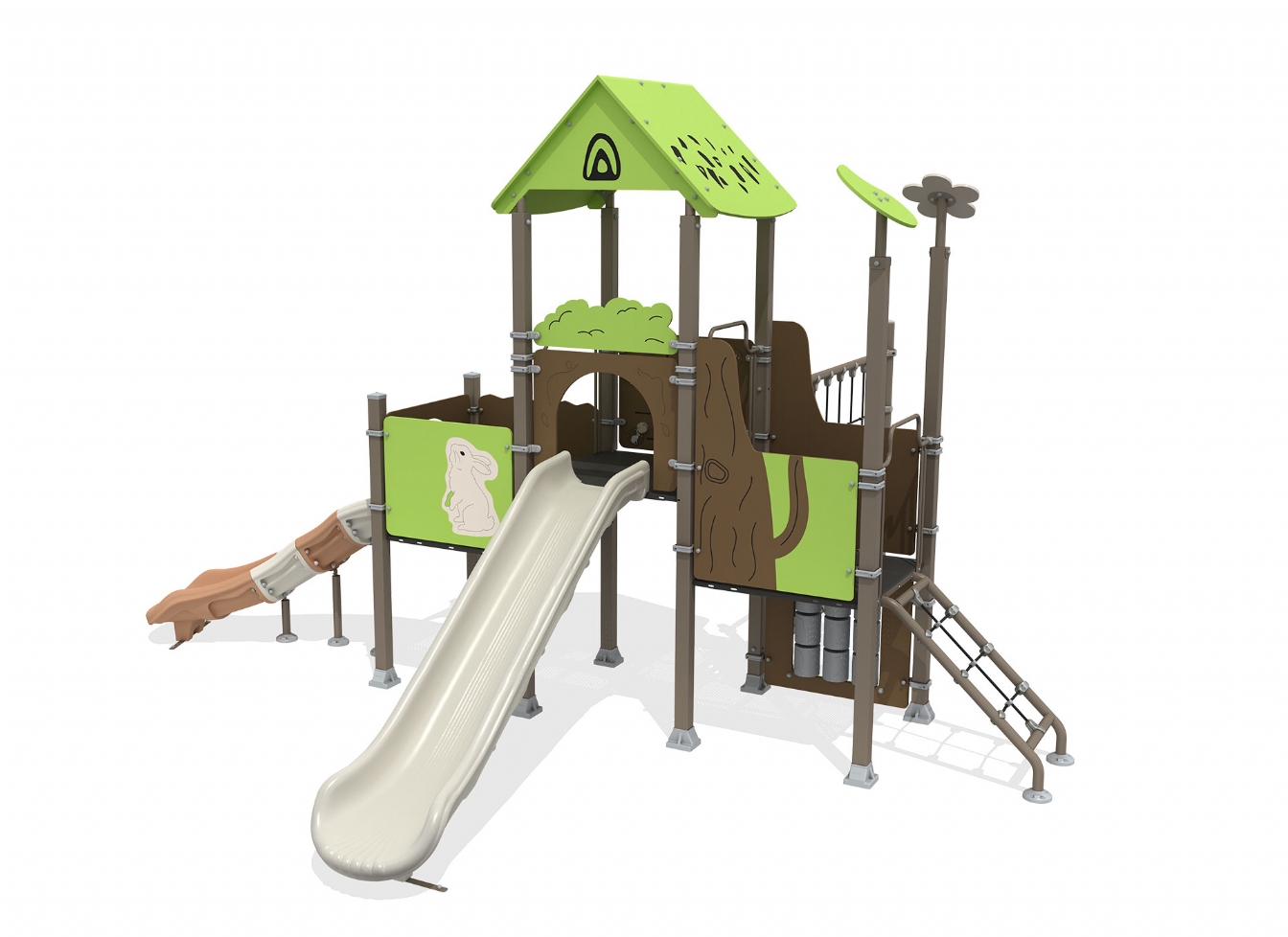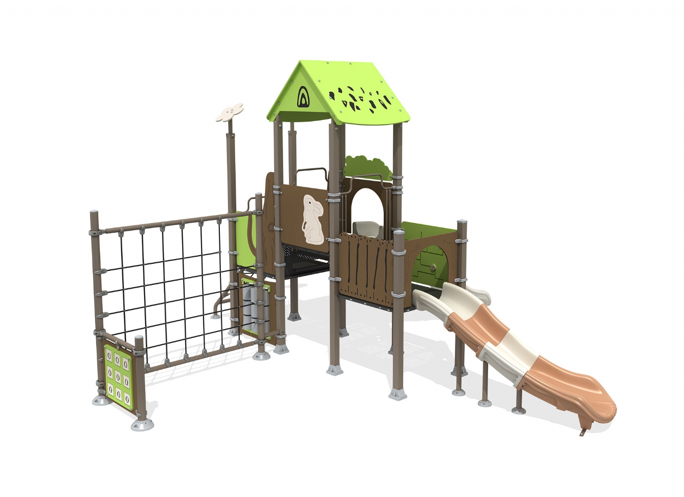 Lekställning Quinia är utvecklad för lekplatser, skolor, förskolor och andra offentliga utemiljöer. Produkten har bredd 654 cm, djup 637 cm och höjd 400 cm. Specifikationen omfattar säkerhetszon L 986 x W 956 samt rutschhöjd 100. Utförandet i metallprofil, polykarbonat, marinplywood och gummi ger en tålig konstruktion som lämpar sig för återkommande användning i krävande miljöer. Den är anpassad för upp till 25 barn och rekommenderad ålder 3-12.