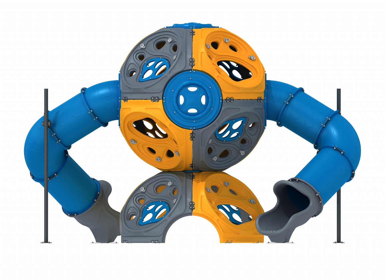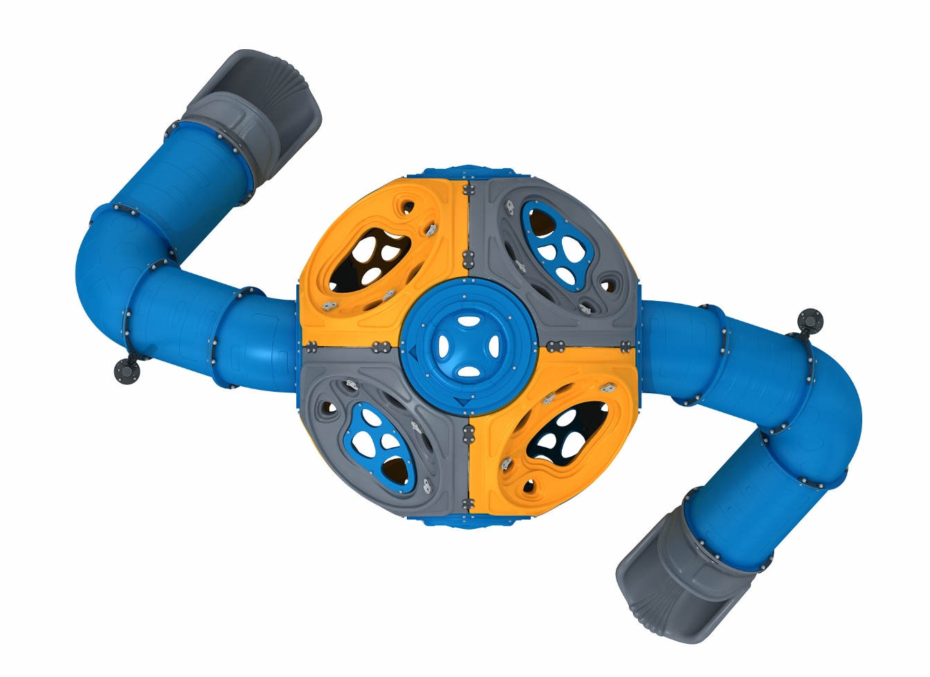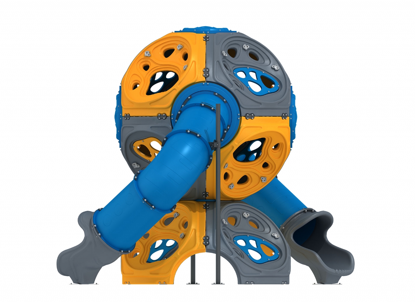 Lekställning Quinula i polykarbonat och marinplywood för offentlig miljö.