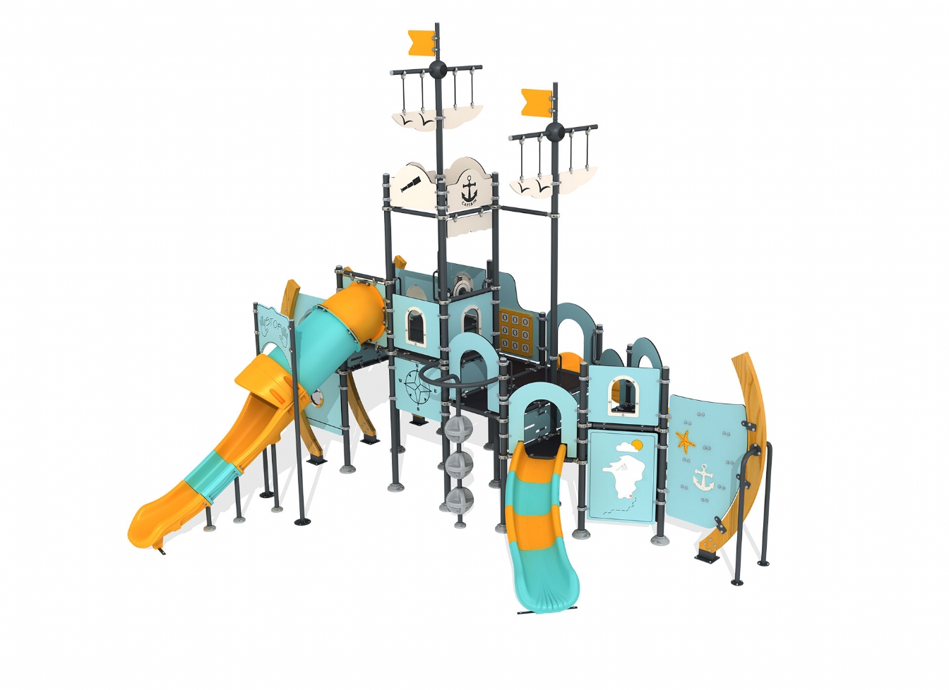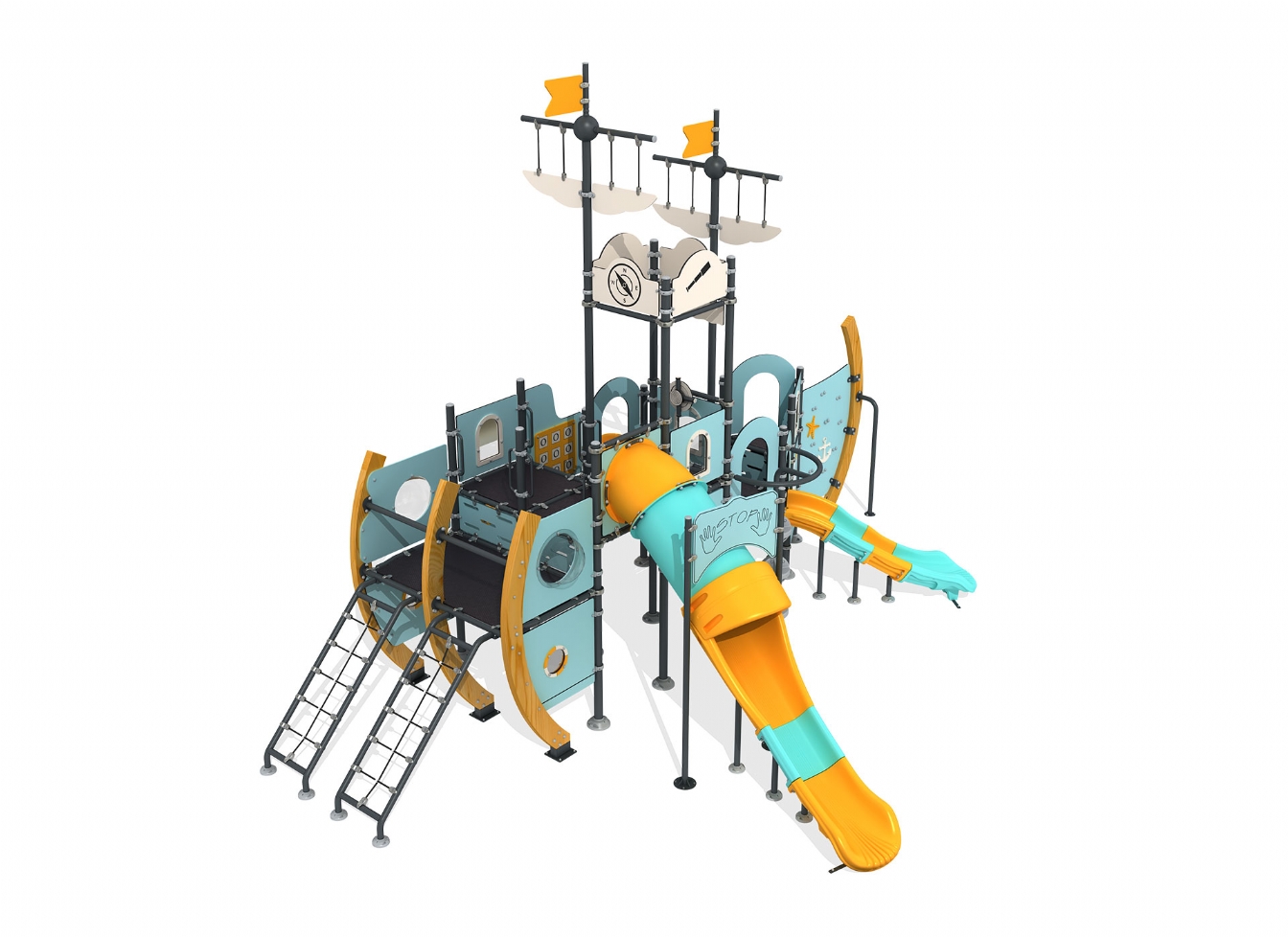 Lekställning Rale är utvecklad för lekplatser, skolor, förskolor och andra offentliga utemiljöer. Produkten har bredd 901 cm, djup 809 cm och höjd 645 cm. Specifikationen omfattar säkerhetszon L 1206 x W 1195 samt rutschhöjd 100. Utförandet i stålvajer, polykarbonat, marinplywood och gummi ger en tålig konstruktion som lämpar sig för återkommande användning i krävande miljöer. Den är anpassad för upp till 35 barn och rekommenderad ålder 3-12.