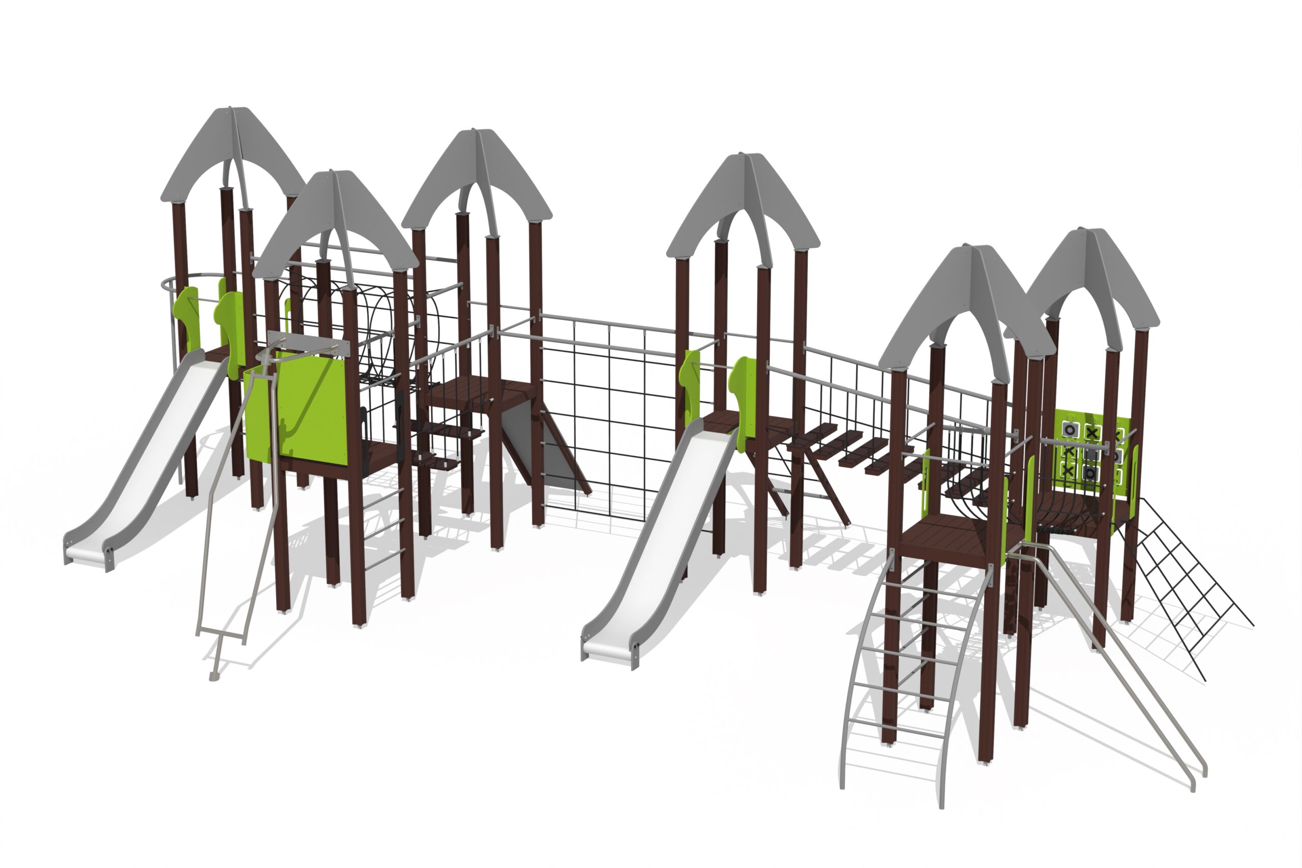 Lekställning Raquel är en lekställning som tagits fram för lekplatser, förskolegårdar och andra offentliga utemiljöer. Modellen kombinerar flera lekmoment och ger barn möjlighet till varierad aktivitet, samspel och motorisk utveckling. Konstruktionen är avsedd för regelbunden användning över tid och passar projekt där man vill kombinera lekvärde med hållbar drift. Mått enligt specifikation: cirka 12,28 x 6,66 x 4,21 m. Rekommenderad ålder: 4+. En praktisk lösning för långsiktig och trygg lekmiljö.