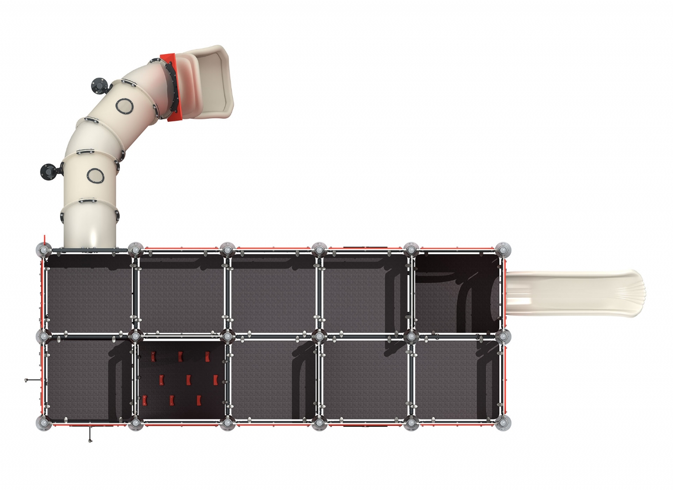 Lekställning Selar är utvecklad för lekplatser, skolor, förskolor och andra offentliga utemiljöer. Produkten har bredd 902 cm, djup 582 cm och höjd 335 cm. Specifikationen omfattar rutschhöjd 100. Utförandet i metallprofil, marinplywood, träen och gummi ger en tålig konstruktion som lämpar sig för återkommande användning i krävande miljöer. Den är anpassad för upp till 15 barn och rekommenderad ålder 3-12.