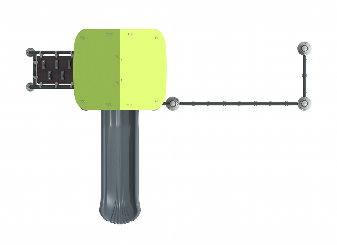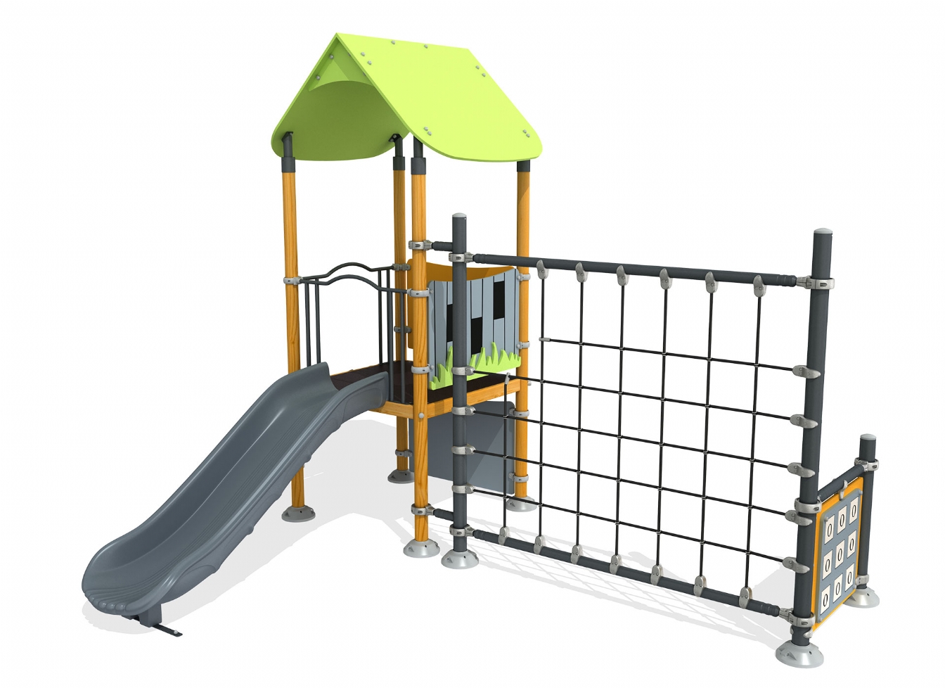 Lekställning Selia i HDPE, HPL och impregnerad furu för offentlig miljö.