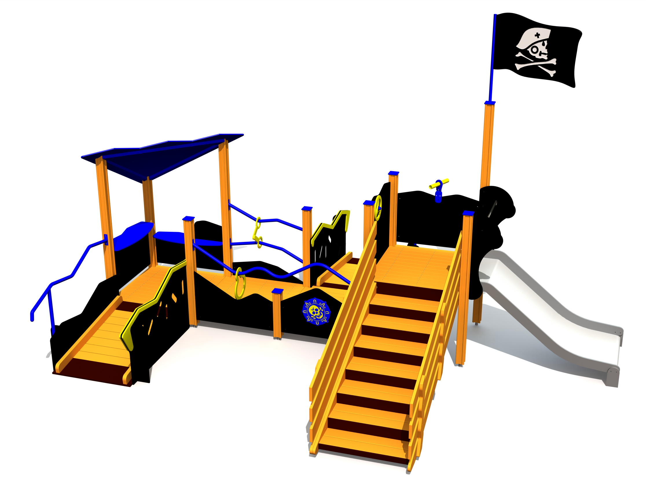 Pirattematiserad lekställning för aktiv lek, samarbete och fantasifulla äventyr på lekplatsen.