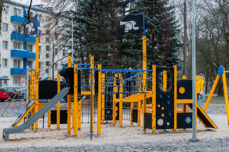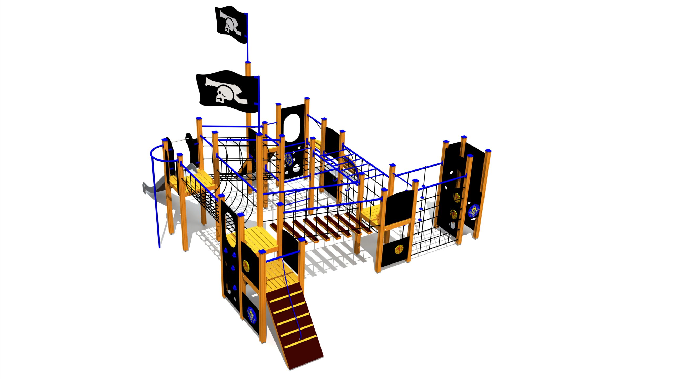 Pirattematiserad lekställning för aktiv lek, samarbete och fantasifulla äventyr på lekplatsen.