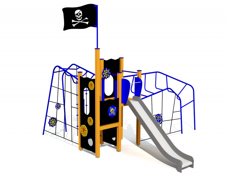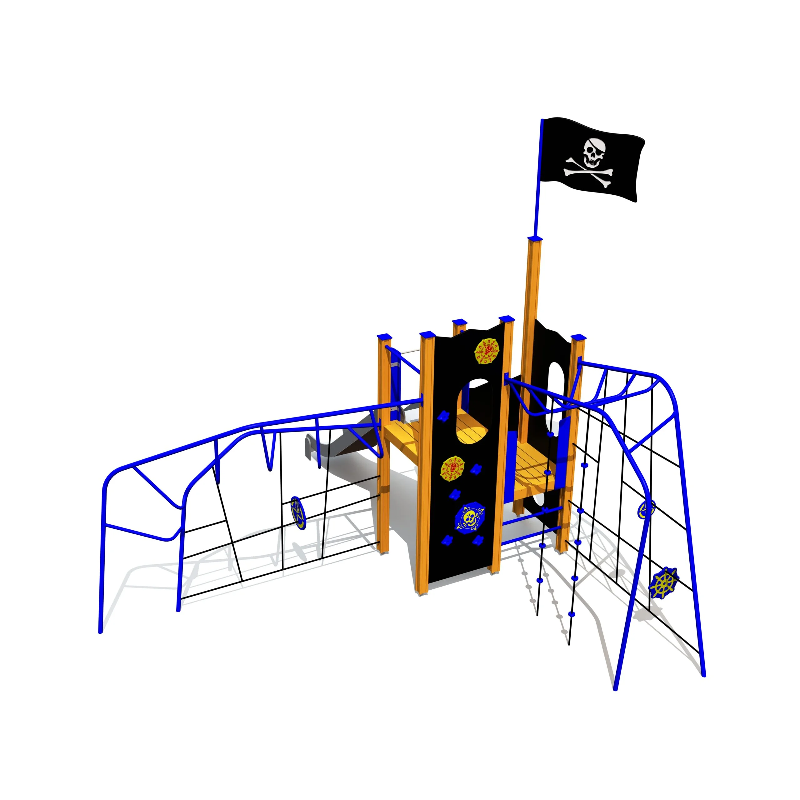 Pirattematiserad lekställning för aktiv lek, samarbete och fantasifulla äventyr på lekplatsen.