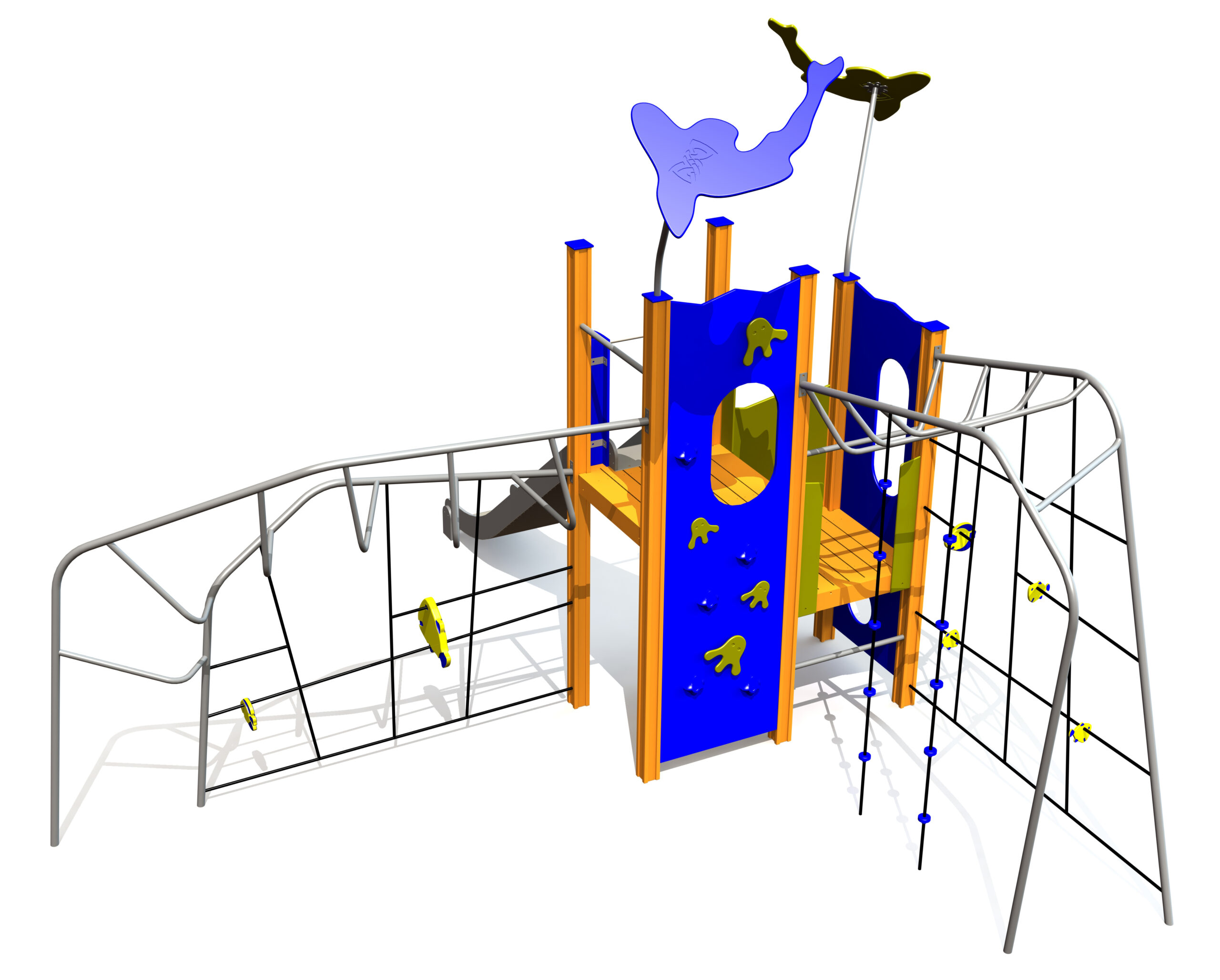 Lekställningar Noveris ingår i serien WATER WORLD och är en lekställning som kombinerar rörelselek, balans och social interaktion i en tydlig vatteninspirerad miljö. Utformningen stödjer både fri lek och gemensamma aktiviteter där barn kan utforska, samarbeta och utveckla motorik på ett tryggt och engagerande sätt. Specifikationer: rekommenderad ålder: 4+; max fallhöjd: 2,6 m; mått ca 5,53 x 5,73 x 4,39 m (L x B x H).