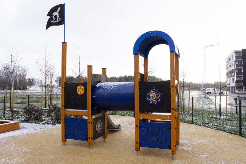 Pirattematiserad lekställning för aktiv lek, samarbete och fantasifulla äventyr på lekplatsen.