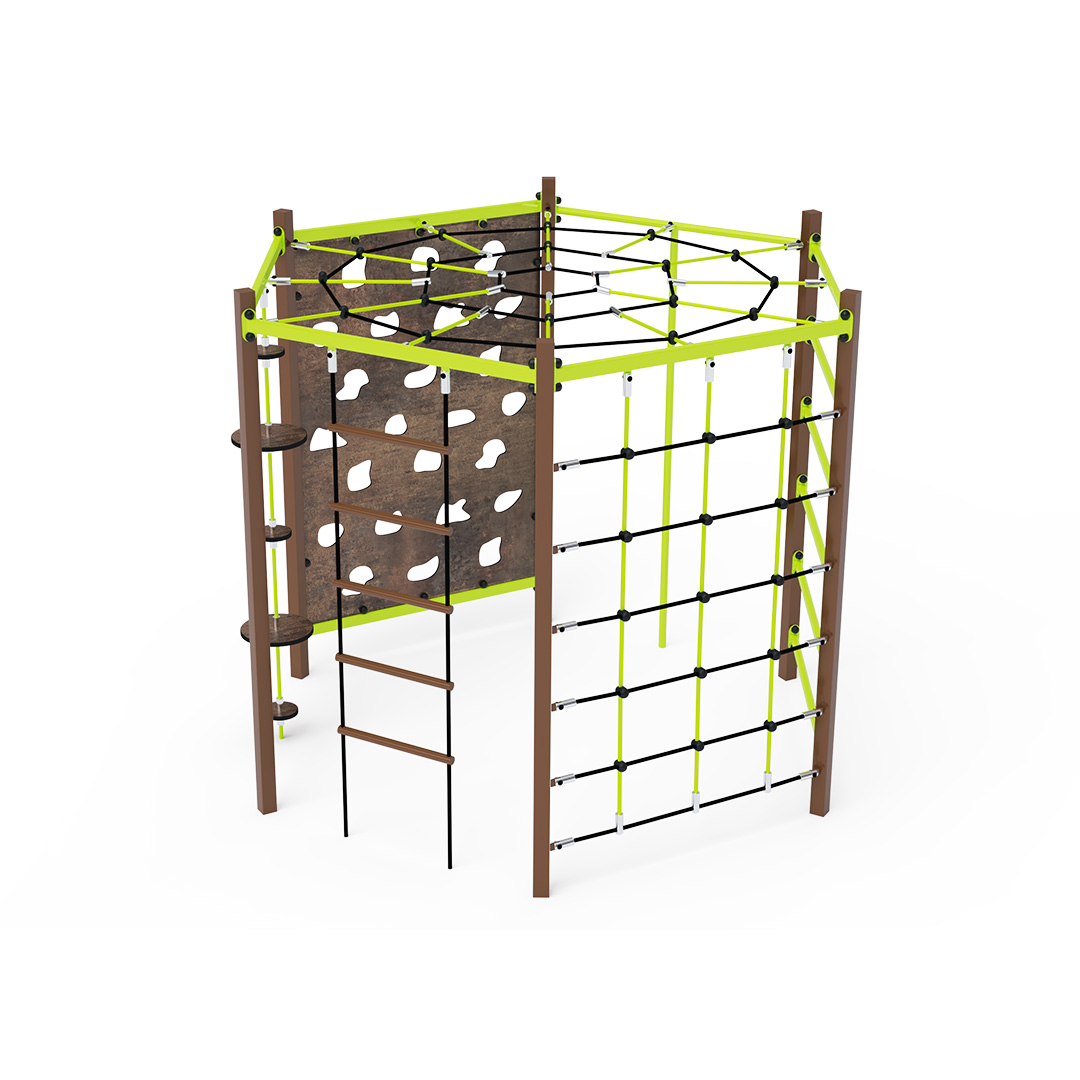 Linredskap Moio är ett linredskap avsett för offentlig utomhusmiljö såsom lekplatser, skolor, förskolor, parker eller gemensamma gårdsmiljöer. Produkten är utförd i hot-dip galvanized steel, polyester ropes, hpl material, stainless steel fasteners, vilket ger en tålig konstruktion för daglig användning utomhus. Elementets mått är 2.2 x 2.6 x 2.1 meter. Rekommenderad ålderskategori är from 3 to 14 years. Fri fallhöjd är 2.00 meter. Säkerhetsytan är 6.1 x 6.5 meter.