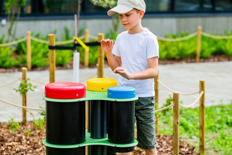Utomhusinstrument för offentlig utemiljö som uppmuntrar kreativt samspel, rytm och rörelse.