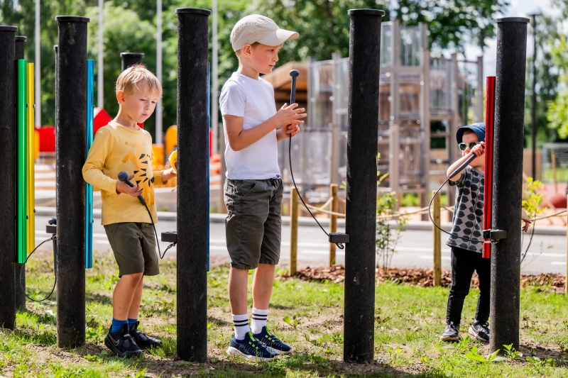 Utomhusinstrument för offentlig utemiljö som uppmuntrar kreativt samspel, rytm och rörelse.