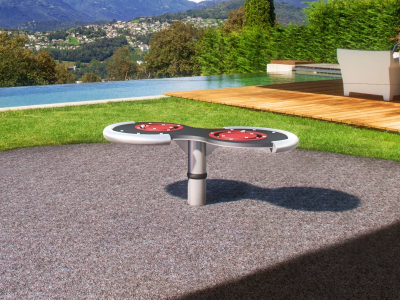 Utomhusinstrument för offentlig utemiljö som uppmuntrar kreativt samspel, rytm och rörelse.