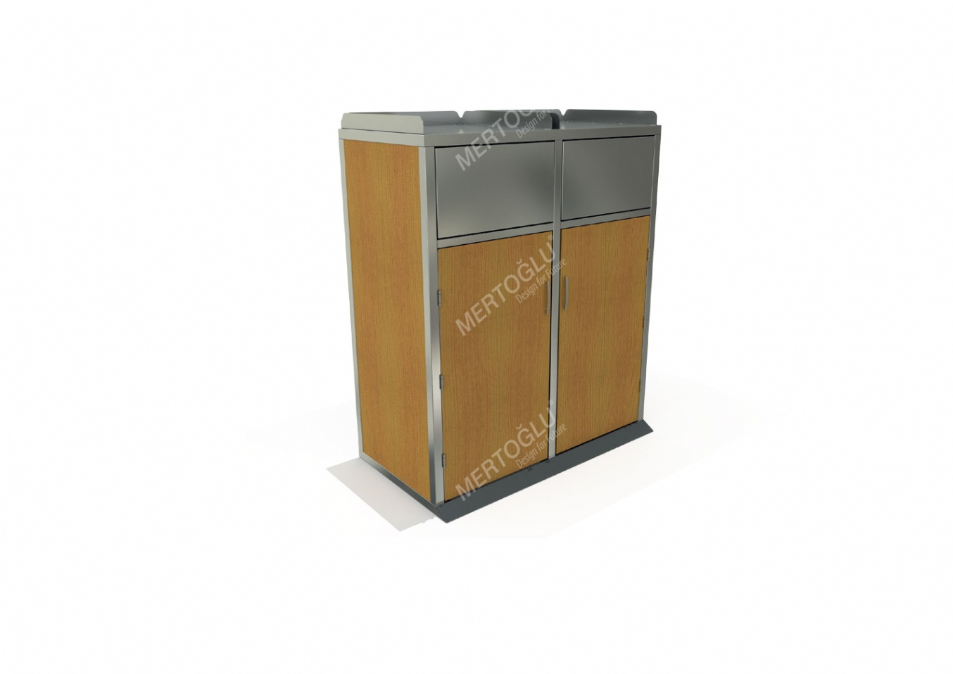 Papperskorg Albele i rostfri plåt och melamine coated chipboard för offentlig miljö.
