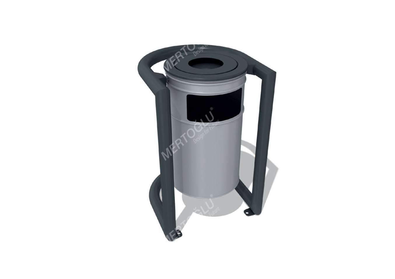 Papperskorg Elena i plåt för offentlig miljö.