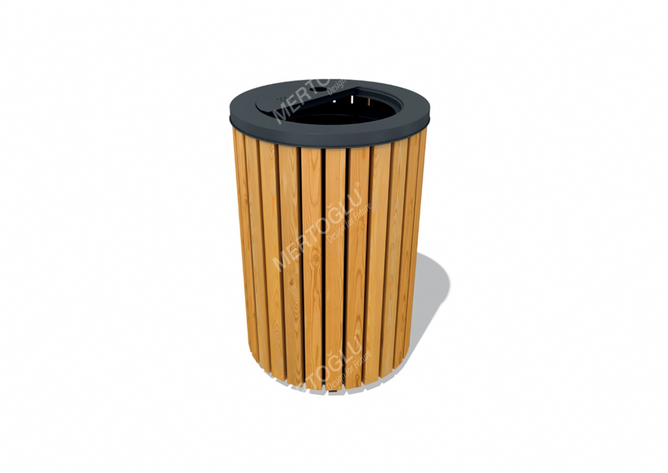 Papperskorg Elun i flat steel base och impregnerad furu för offentlig miljö.