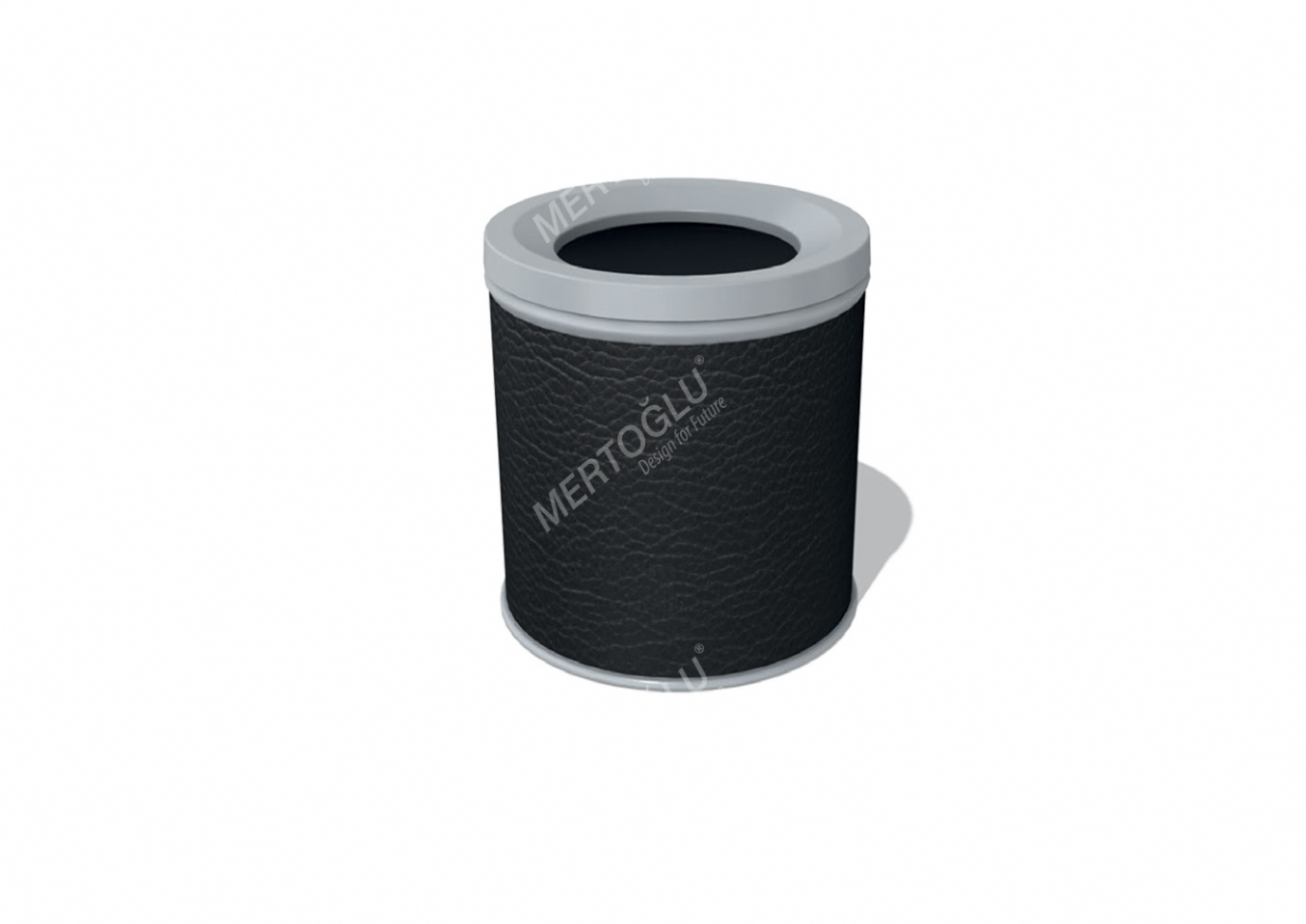 Papperskorg Fenora i leather covering för offentlig miljö.