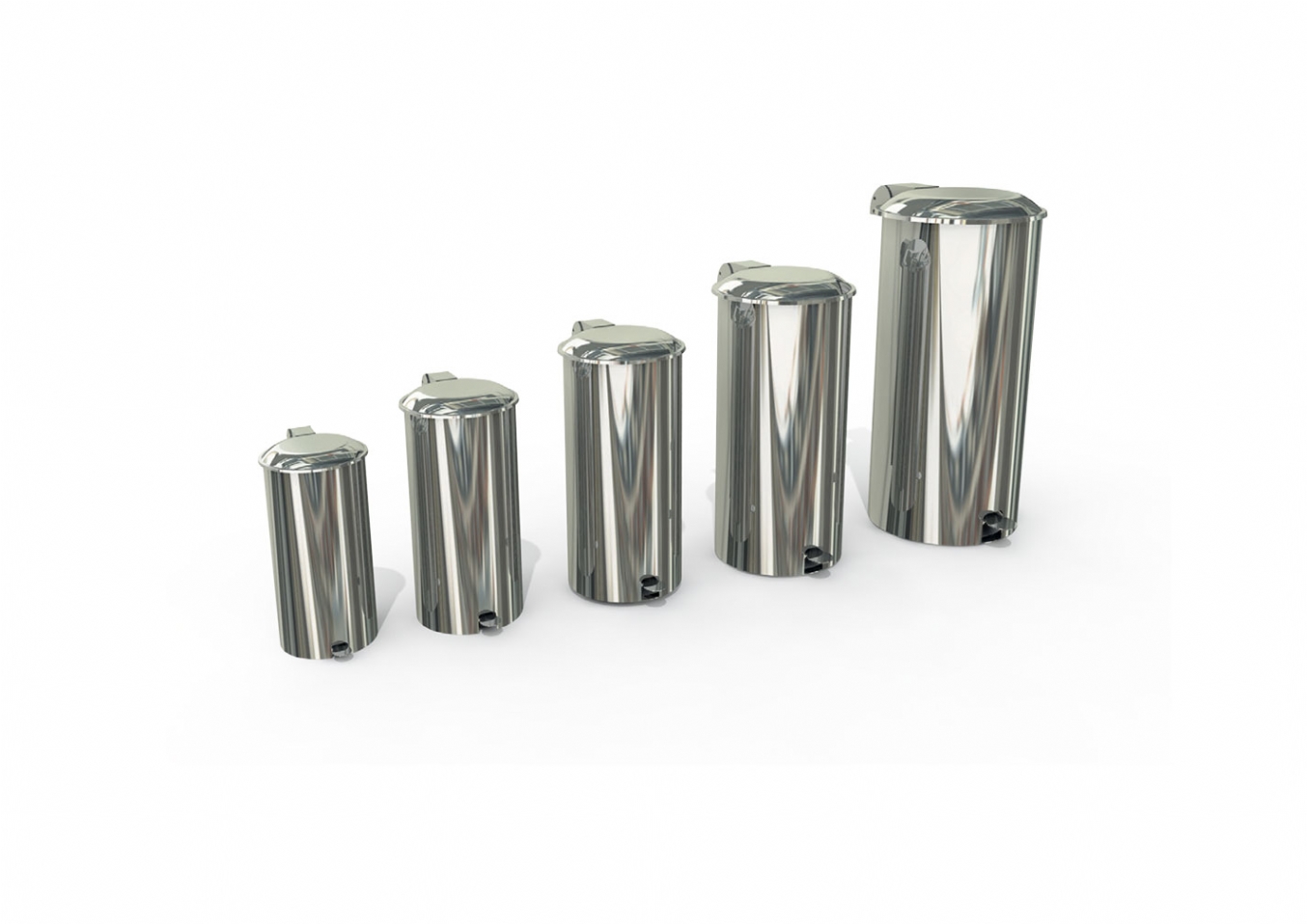 Papperskorg Fenuno i rostfri plåt för offentlig miljö.