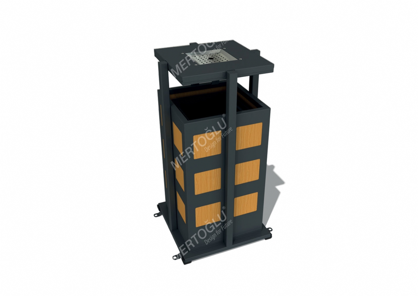 Papperskorg Gilola är utvecklad för parker, gårdar och offentliga platser med höga krav på slitstyrka och daglig användning. Produkten har bredd 40 cm, djup 40 cm och höjd 79 cm. Utförandet i plåt, metallprofil och marine laminated panel ger en tålig konstruktion som lämpar sig för återkommande användning i krävande miljöer. Den har en volym på 30 lt trash receptacle- 1,8 lt ash receptacle och ett uppgivet volymmått på 0,12 m³.