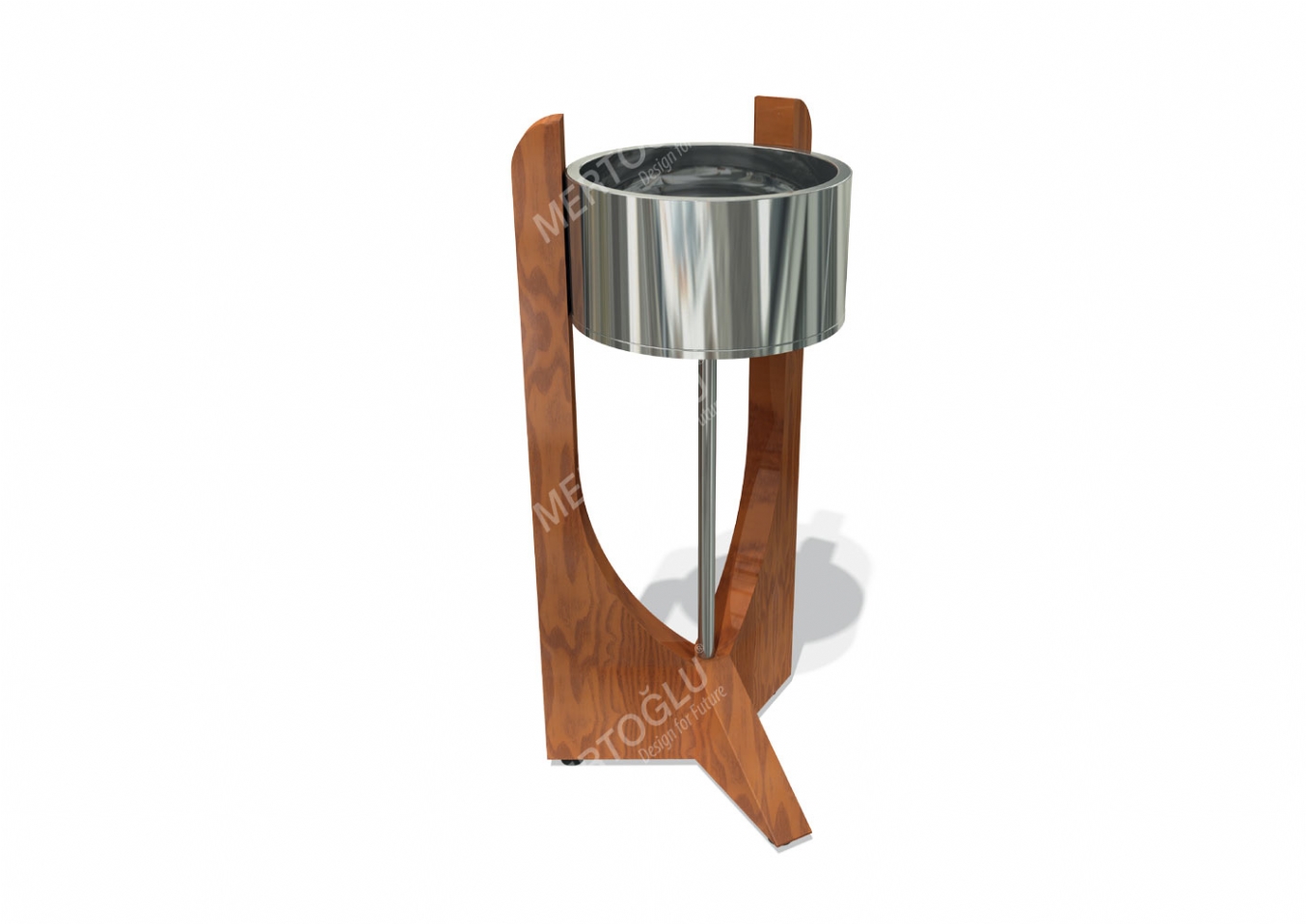 Papperskorg Gilos i rostfri plåt och träen like plåt cladding för offentlig miljö.