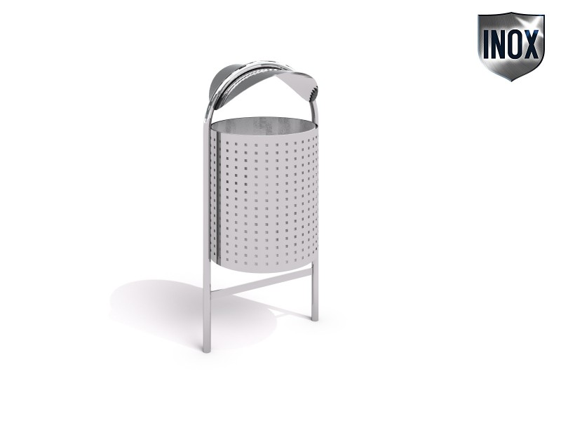 Papperskorg rostfritt stål 06 för park- och stadsmiljö med hållbar konstruktion, funktionell design och låg skötselnivå i daglig drift. Material: rostfritt stål.