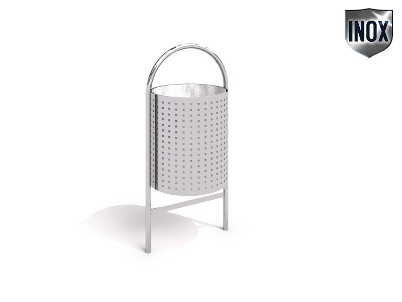 Papperskorg rostfritt stål 07 för park- och stadsmiljö med hållbar konstruktion, funktionell design och låg skötselnivå i daglig drift. Material: rostfritt stål.