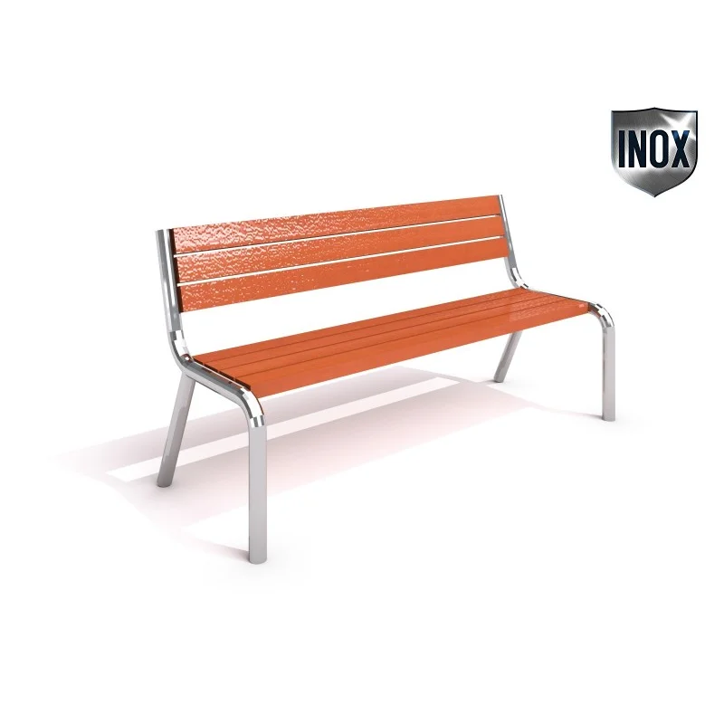 Parkbänk 02 rostfritt stål DECO för park- och stadsmiljö med hållbar konstruktion, funktionell design och låg skötselnivå i daglig drift. Material: rostfritt stål och trä.