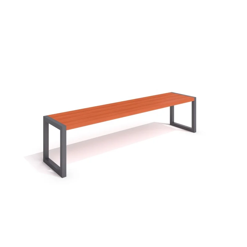 Parkbänk 16 stål utan ryggstöd för park- och stadsmiljö med hållbar konstruktion, funktionell design och låg skötselnivå i daglig drift. Material: pulverlackerat stål och trä.