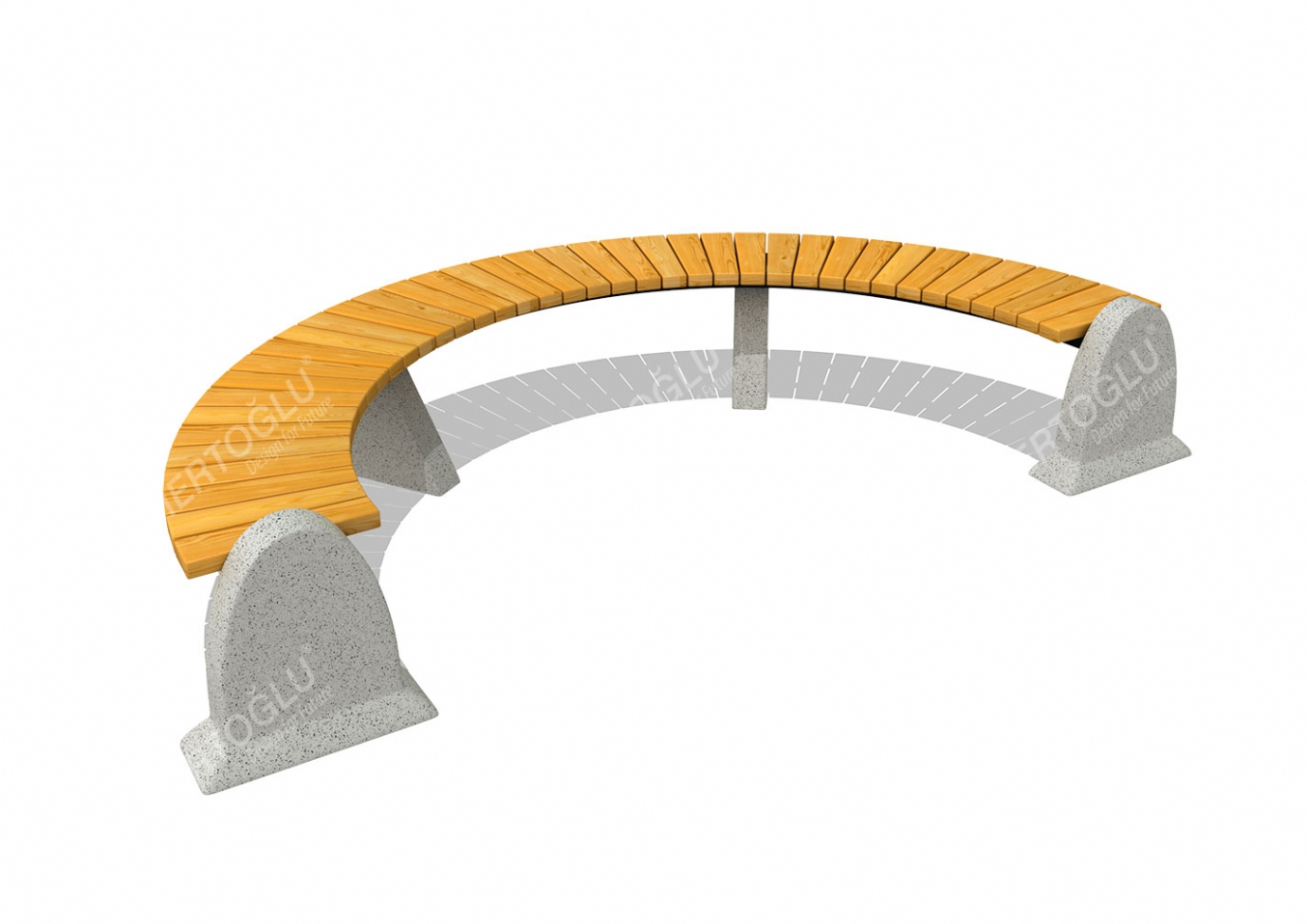 Parkbänk Alari i betongblock, plåt och impregnerad furu för offentlig miljö.