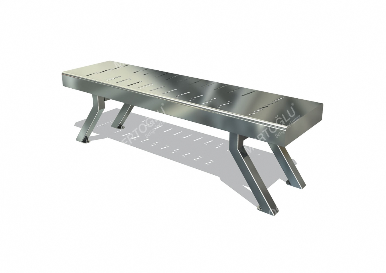 Parkbänk Arari i rostfri plåt för offentlig miljö.